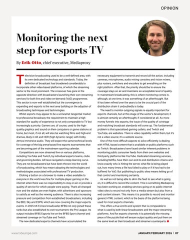 Monitoring the next step for esports TV By Erik Otto, chief executive, Mediaproxy