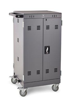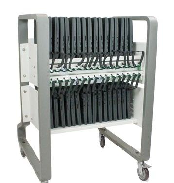 The Elevate Air USB-C Open Charging Cart, Powered by Quick-Sense USB-C module(s) provides fast and balanced charging that is completely AC adapter-free. Unlike traditionally designed carts, the open concept provides easy visibility of devices from across the room.
