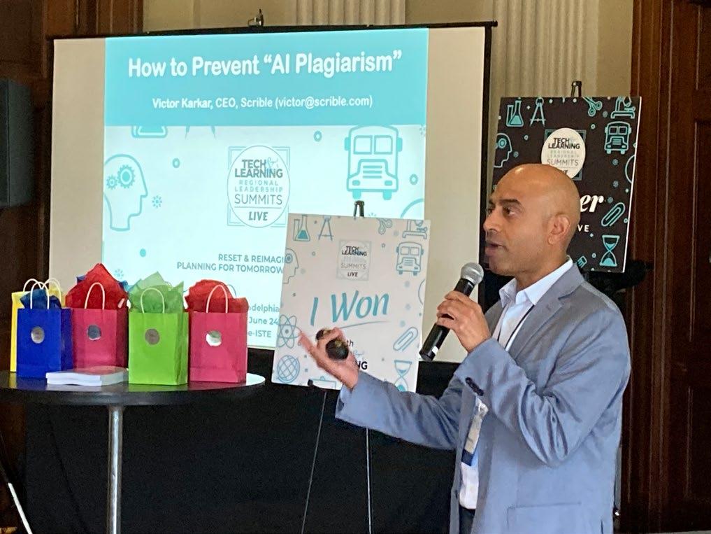 Attendees were welcomed with a special greeting from Sal Khan, founder of Khan Academy, who set the tone for the day by discussing the potential impact of artificial intelligence on education, telling attendees, “Technology is not there in some way to replace teachers, but it’s there to provide a teaching assistant. It’s not about the technology, it’s about the pedagogy.” Khan also talked about creating ethical