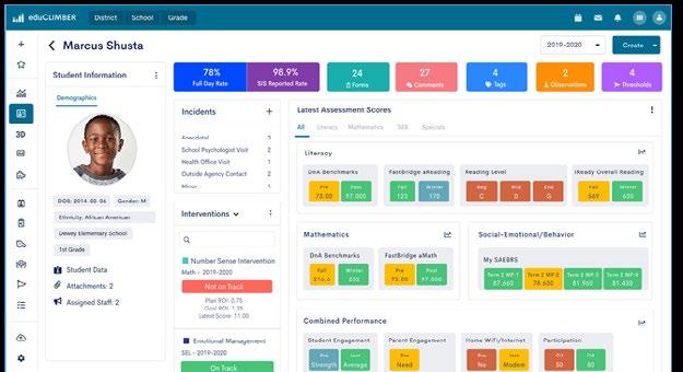 eduCLIMBER provides interactive districtlevel to whole child data management and strengthens multi-tiered system of support implementations with tools for student need identification, measuring intervention effectiveness, and more. The judges appreciated its single dashboard, adding, “MTSS includes so many facets of a student, that a tool like this is long overdue.”