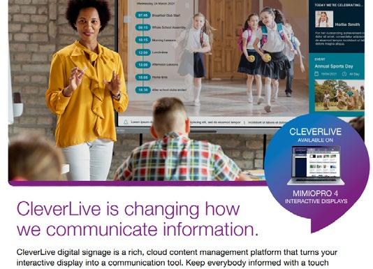 posters, welcoming messages, and updates throughout the campus. It is also designed to simplify the booking of rooms and integrate with popular calendar systems. Our judges were also impressed with how CleverLive provides a mobile device management section for administrators to monitor device health and ensure timely updates.