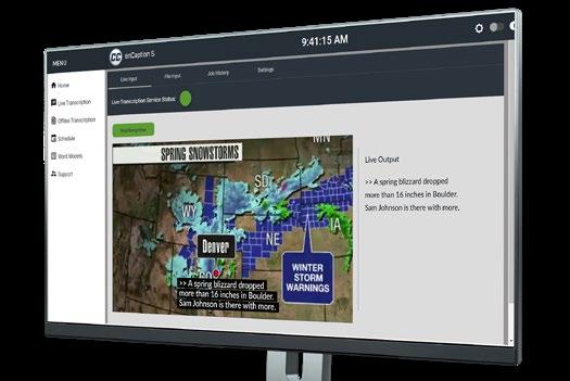 Imagine has introduced Essentials channel origination for its Aviator Make TV cloud solu tion for playout channels that do not need to handle live events. Using Imagine’s cloud-na tive channel origination solution, Aviator Essen tials provides simple set-up and operation with the same premium video, audio and graphics quality as its Standard and Premium channels, making it a cost-effective package ideal for launching thematic, pop-up, and FAST chan nels, and building cloud-based DR workflows. The graphics capabilities—through its part nership with Singular.live—harness the widely adopted HTML5 format, which is portable and easy to use. It supports real-time external dynamic data and playlist data insertion, and SCTE triggers to drive ad insertion workflows. z For more information visit www.imaginecommunications.com