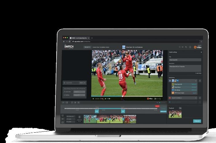 MIMiC is a cloud-based, live production and delivery platform that provides global access to production, clipping and editing, transmis sion, and bonded cellular capabilities. The end-to-end production-as-a-service covers full live remote/distributed IP video production, real-time clipping and editing for social media, and cloud-based global transmission. It handles all aspects of the production workflow in the cloud, giving content producers the choice to use their own production crew or The Switch’s experienced team. MIMiC’s transmission service enables global IP delivery, enabling rights hold ers to take video feeds—clean and/or dirty— from anywhere in the world and simultaneously deliver them to hundreds of destinations using cloud-based networks and, where available, The Switch’s private network.