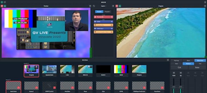 GV AMPP offers a new user experience in creating live video programs with the introduction of Live Producer X, aimed at giving production teams many of the same high-end creative features they can get with a traditional production switcher, but with a much simpler operational paradigm.