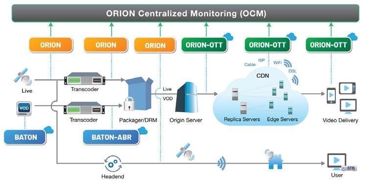Interra Systems’ BATON QC and ORION mon itoring solutions support cloud-based deploy ments and enable unparalleled flexibility in terms of licensing, deployment, and configu ration. They allow service providers to detect QC and QoE issues for VOD and live content at each step of file-based workflows, both on-premises and in the cloud. The solutions seamlessly communicate with transcoders, dig ital rights management systems, CMS, CDNs, network management systems, and other integral workflow components. APIs further simplify integration between components in a cloud environment. Interra Systems also offers a cost-effective media processing platform, al lowing broadcasters, video distributors and OTT service providers to leverage cloud technology.