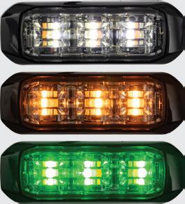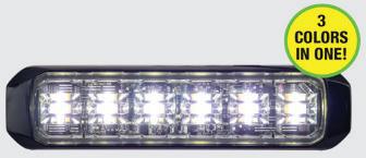 3-in-1 color design featuring Amber/Clear/Green or Amber/Clear/Blue configurations. Up to 18 LEDs and 28 flash patterns with alternating and synchronous functions. 3-1/2" or 5" models available.