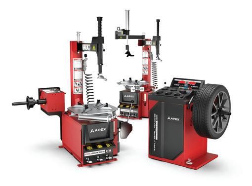 For balancing, the AB28 manual wheel balancer handles wheels up to 44” in diameter with a seven-second cycle time and LED-guided weight placement. The AB24M integrates directly with a tire changer to create a compact change-andbalance workstation, saving floor space and streamlining workflow.