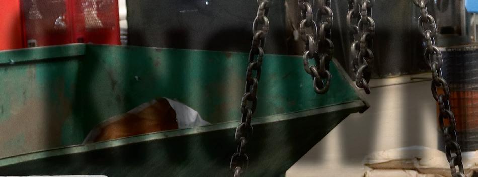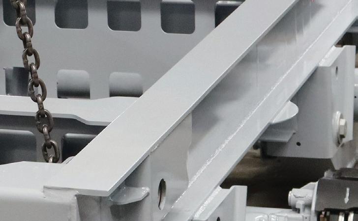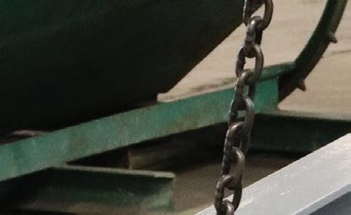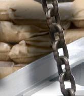 a chain-over system with industrial leaf chains and oversized rollers with grease fittings for durability.