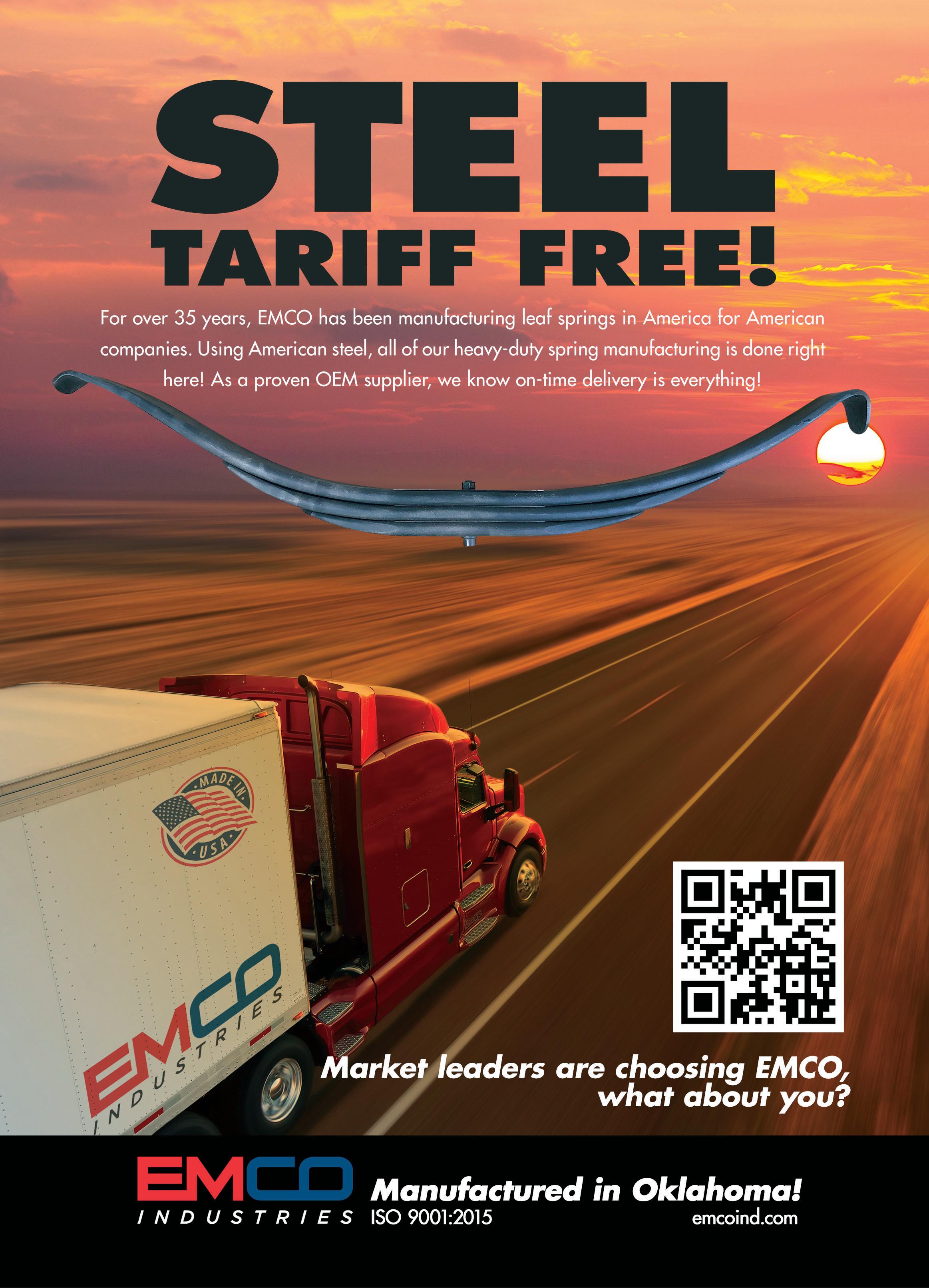 The new springs will be manufactured with EMCO’s proprietary steel specifications and heat-treating processes, and each will be painted for corrosion resistance. The company is currently taking orders for the new springs, with delivery expected to take about eight weeks.