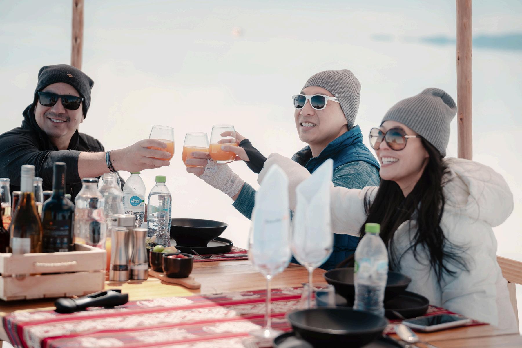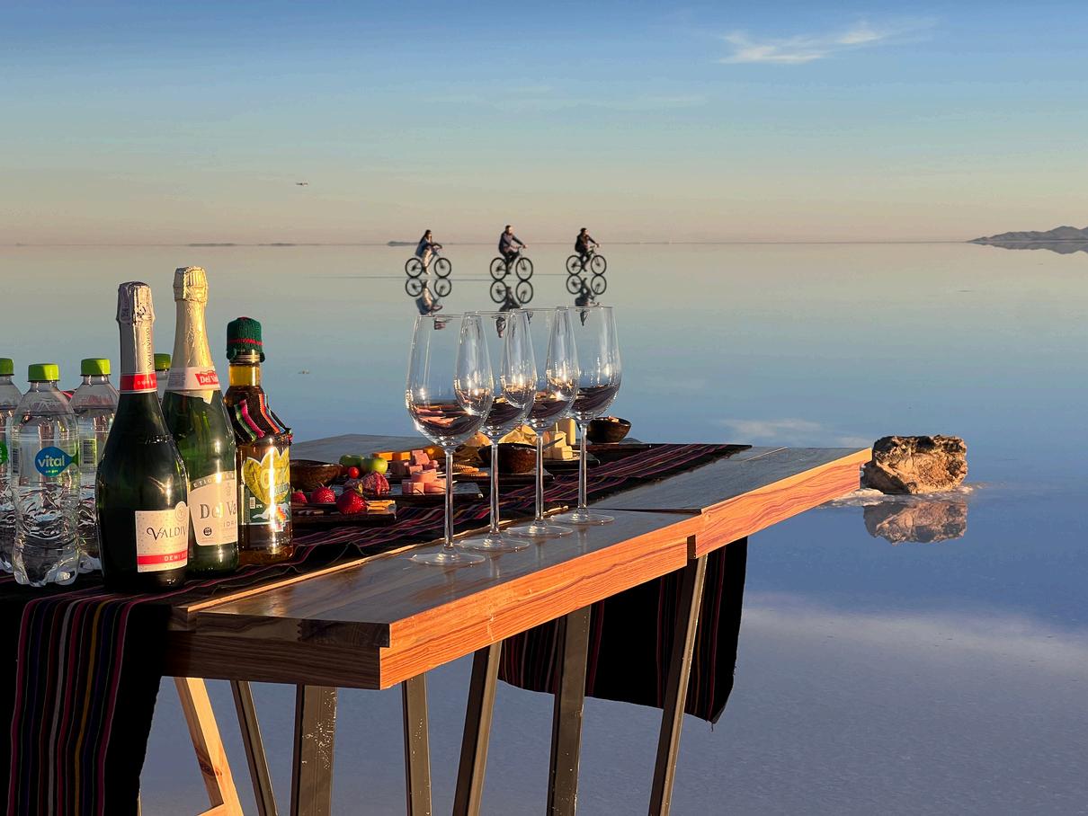 12.00 Uyuni, en oficinas cambio a vehículo 4x4 y se inicia el recorrido Visita Cementerio de Trenes continuamos hacia comunidad indígena de Colchani, observación de elaboración de sal yodada en su forma rustica, luego ingresaremos al impresionante salar inundado observaremos pirámides de sal, todo el trayecto disfrutaremos del juego de espejismos en pleno desierto producto de las lluvias convirtiéndose en Lago de sal, un verdadero espectáculo aventura inolvidable. Avanzaremos hasta Museo de sal si el nivel de agua nos favorece, posteriormente disfrutaremos de una puesta del sol acompañado de un coctel de coca de bienvenida y finalizando el tour con traslado a su hotel, acomodación y pernocte