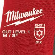 Alla MILWAUKEES handsklösningar är certifierade enligt både EN ISO 21420 och EN 388 standarder, den givna märkningarna varierar för varje typ av handske. EN ISO 21420 är den europeiska standarden för allmänna krav och testmetoder för skyddshandskar.