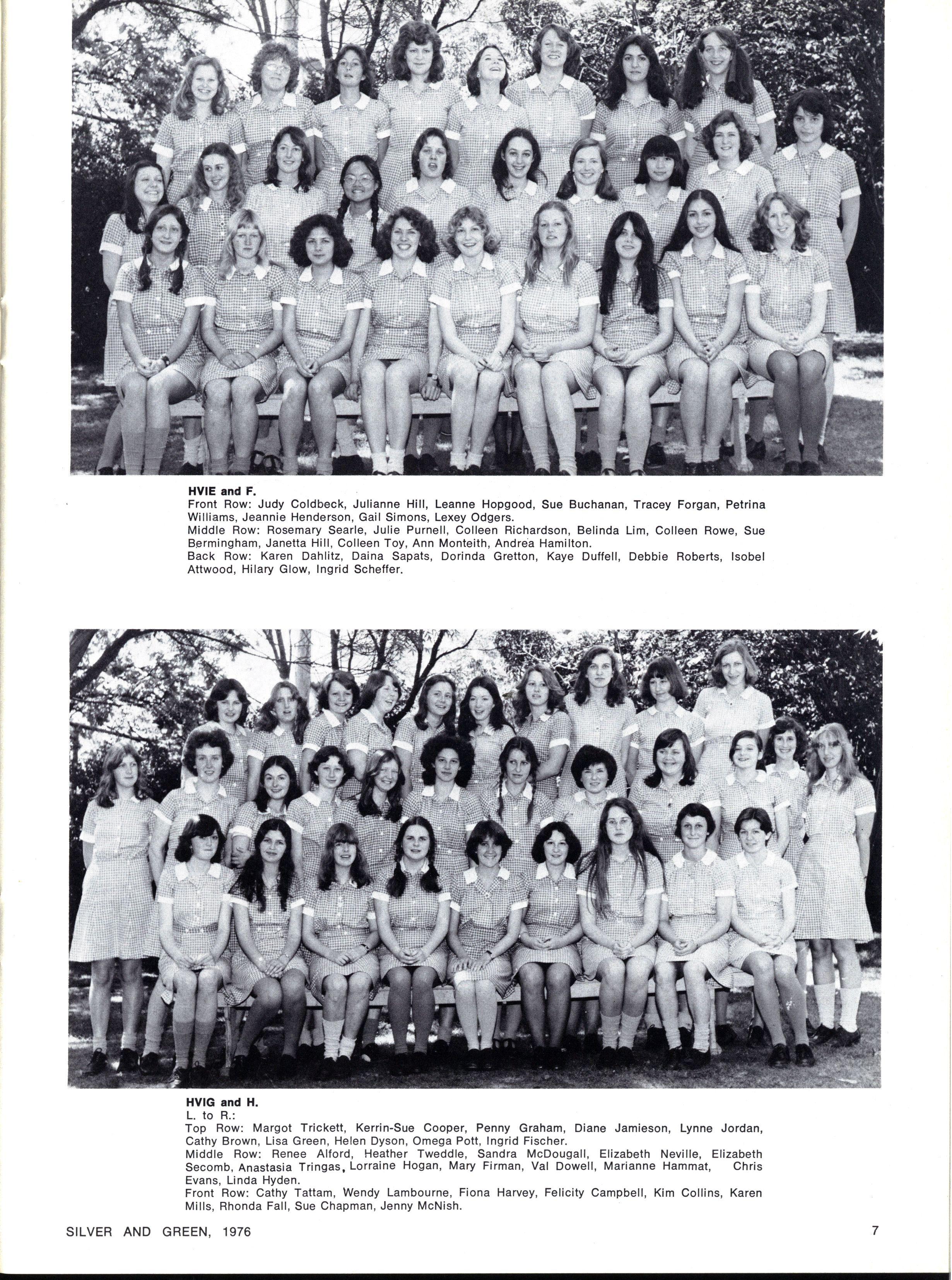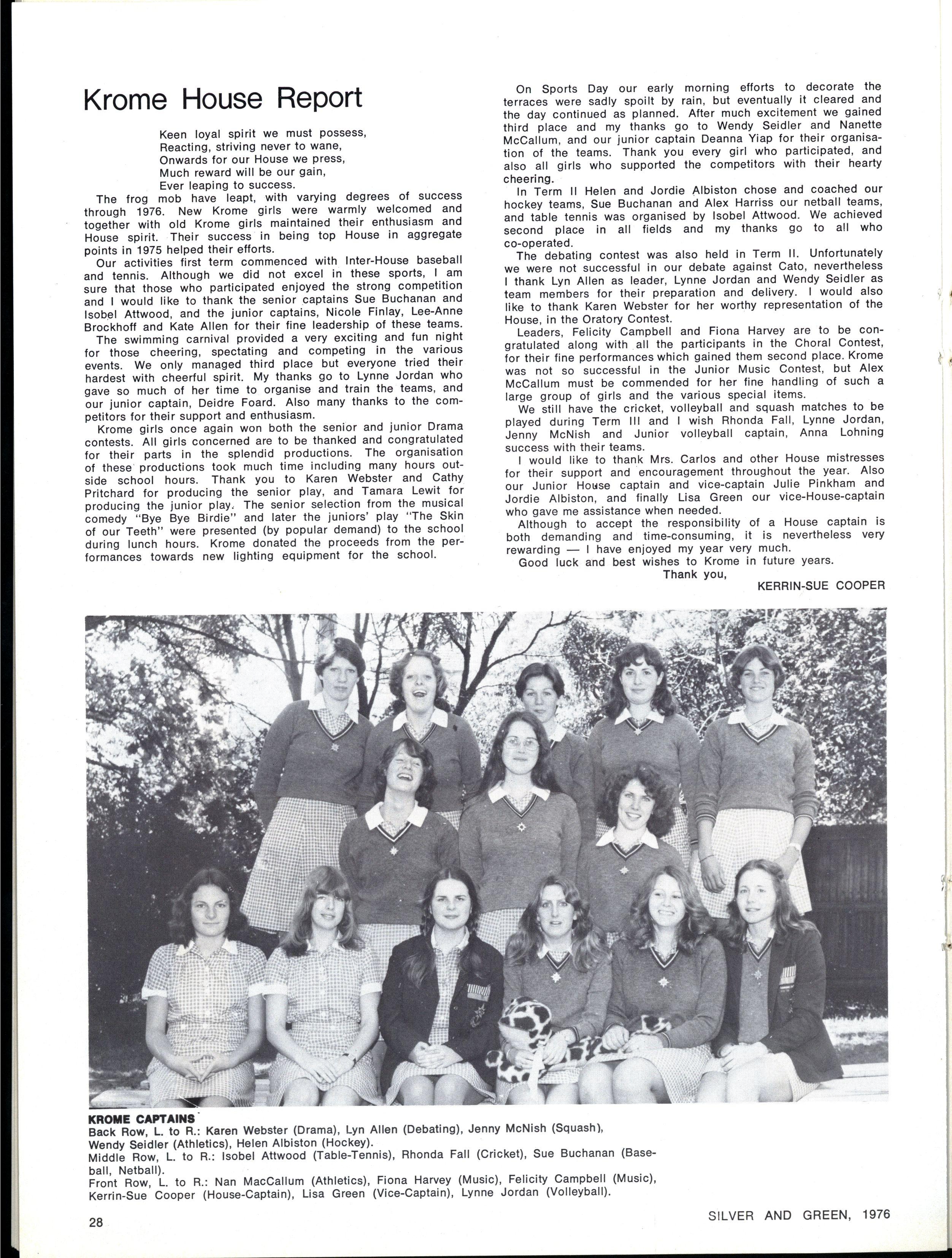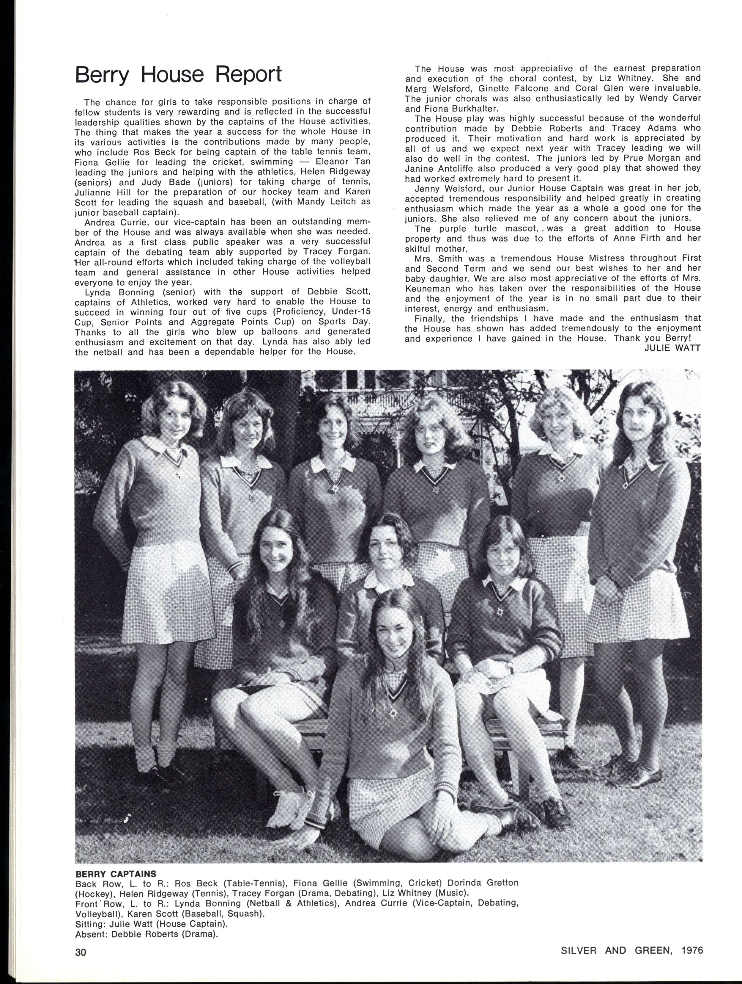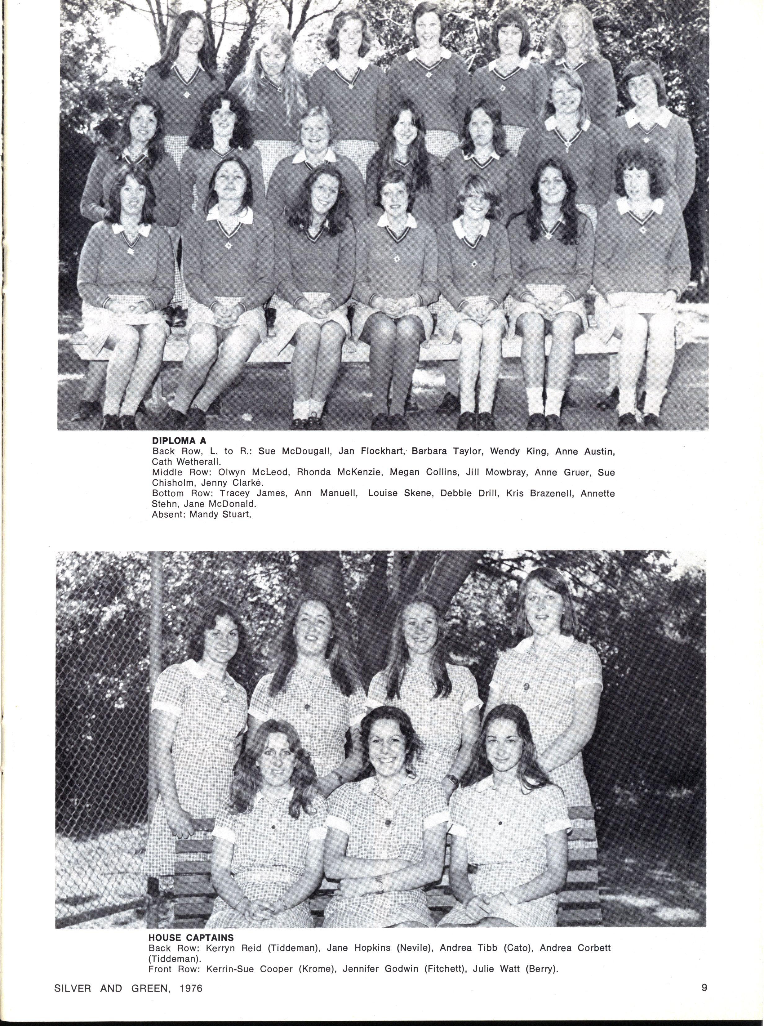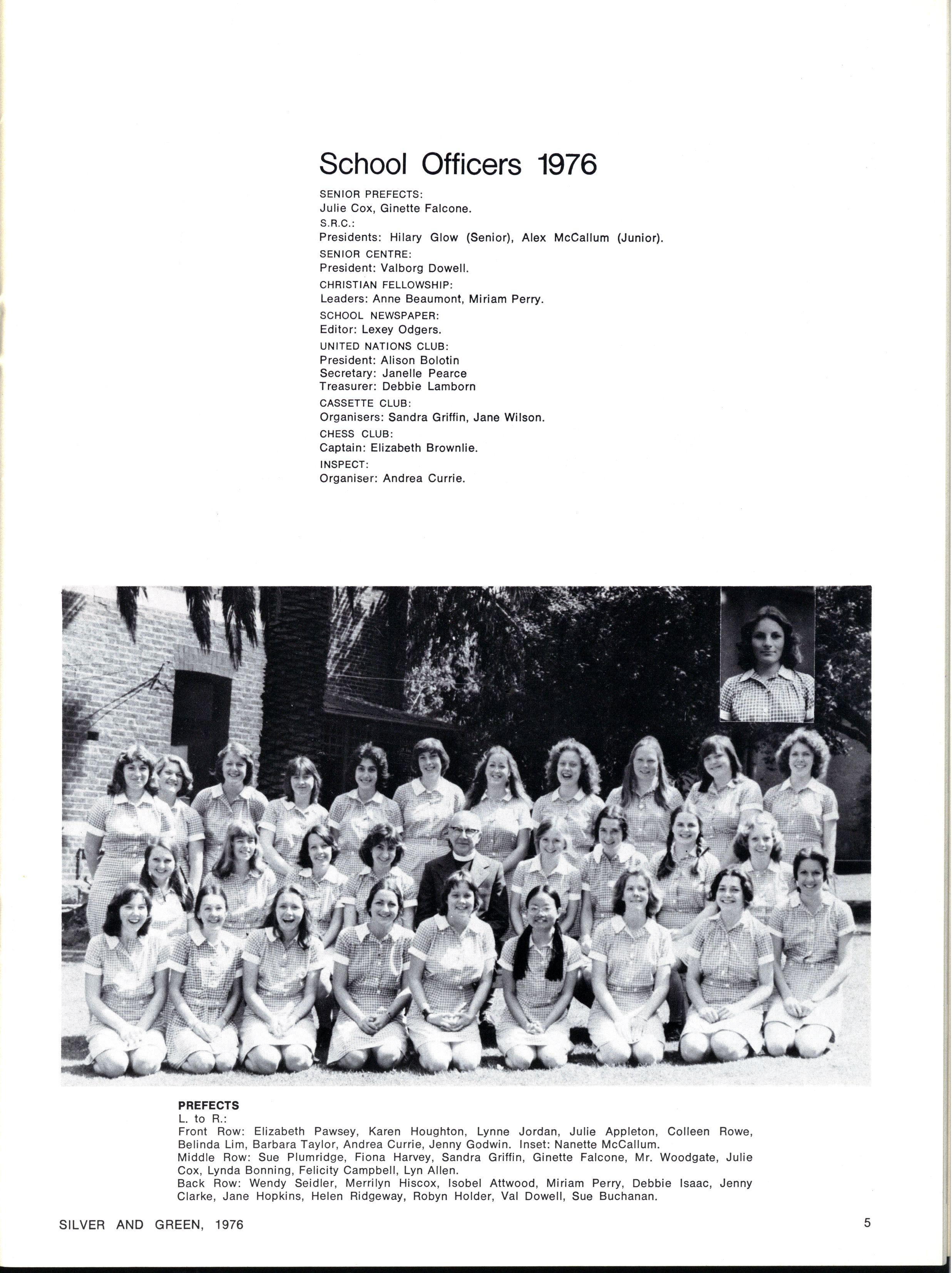 JOINT SCHOOL HEAD PREFECTS: Julie Cox, Ginette Falcone SILVE R AN D GREEN , 1976