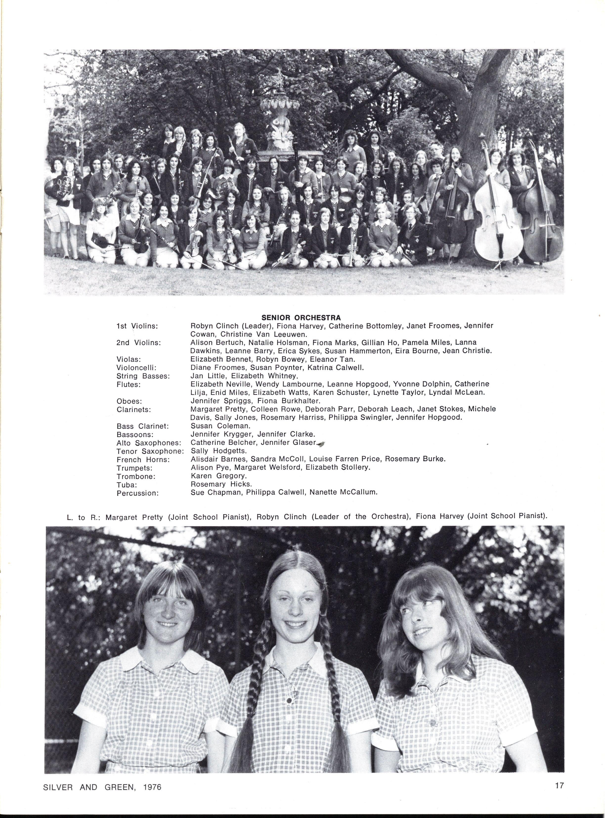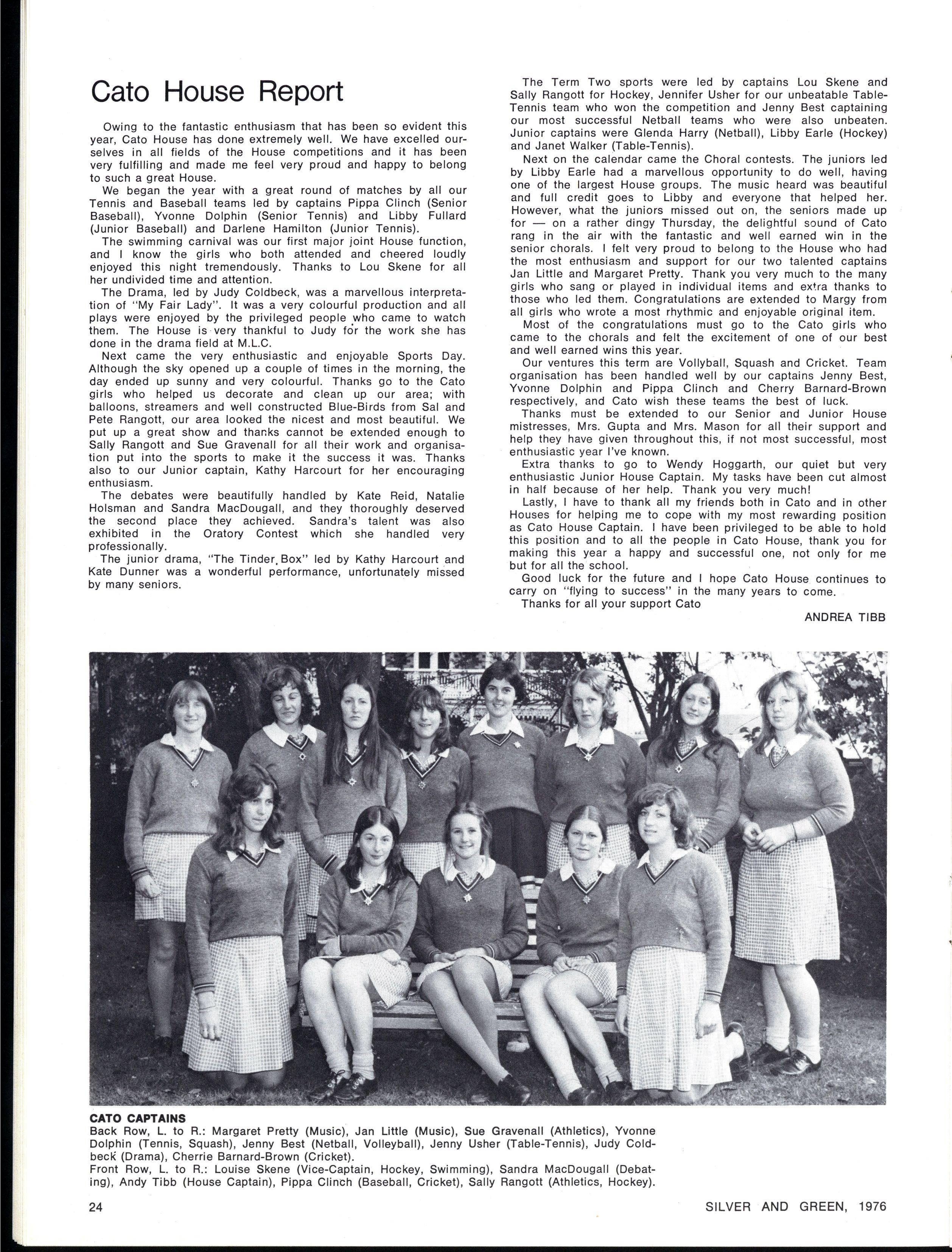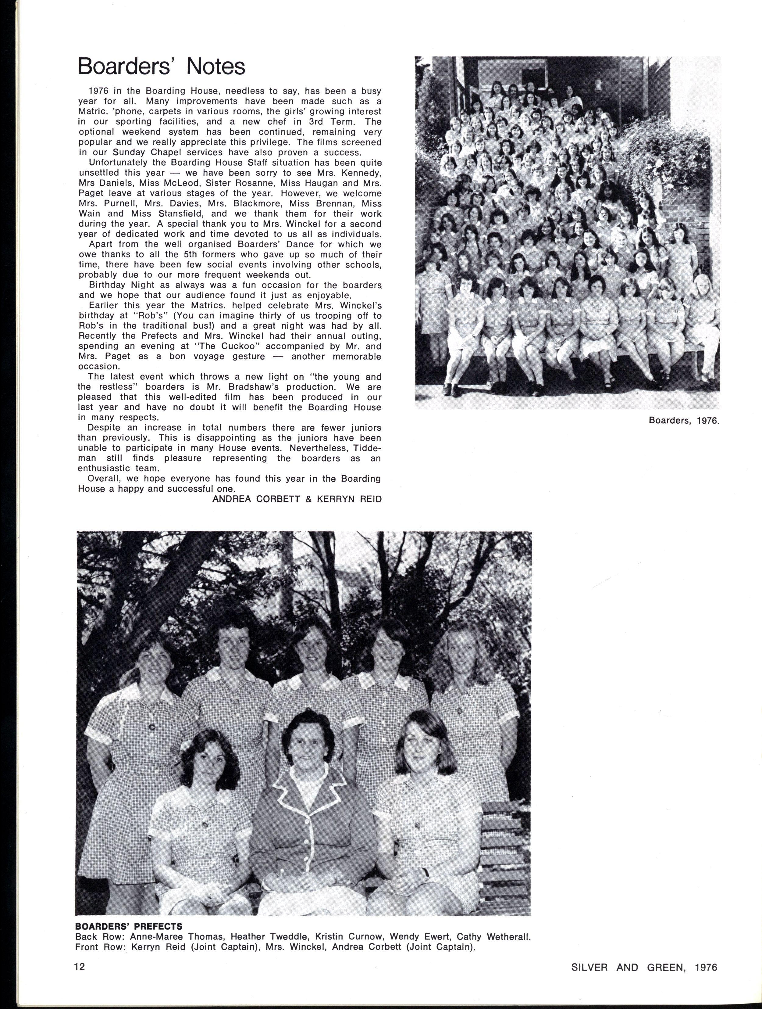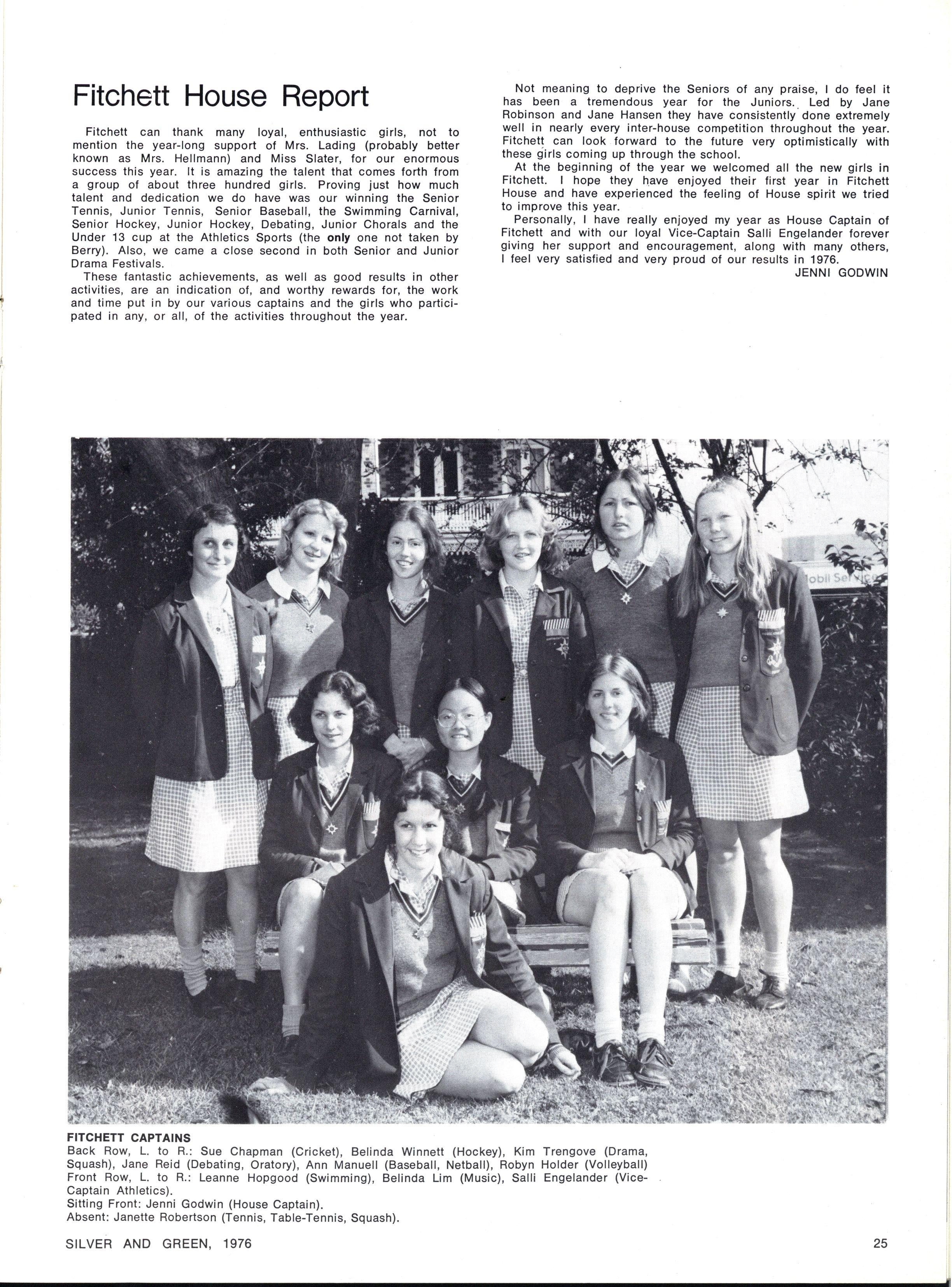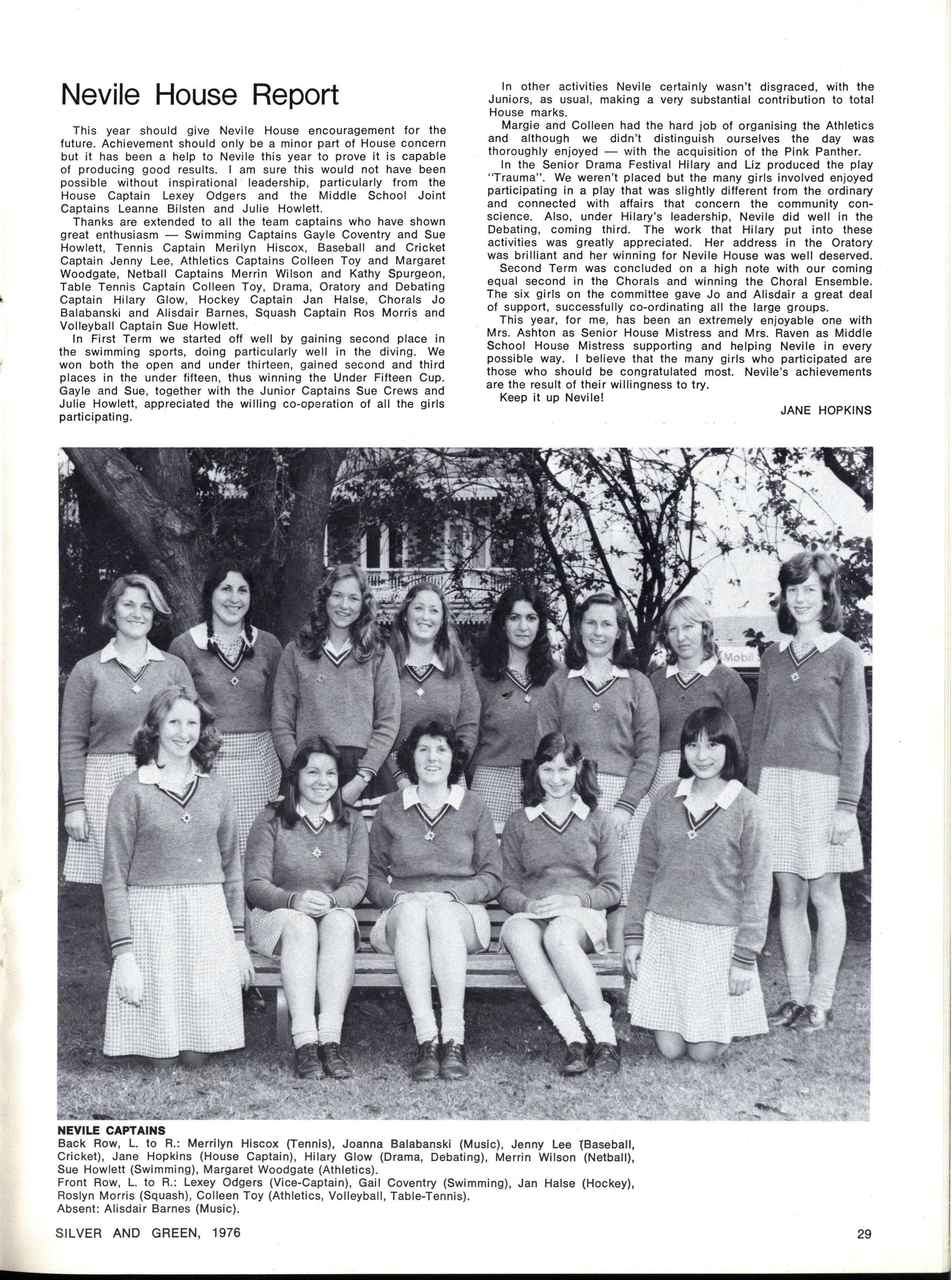 JOINT SCHOOL HEAD PREFECTS: Julie Cox, Ginette Falcone SILVE R AN D GREEN , 1976