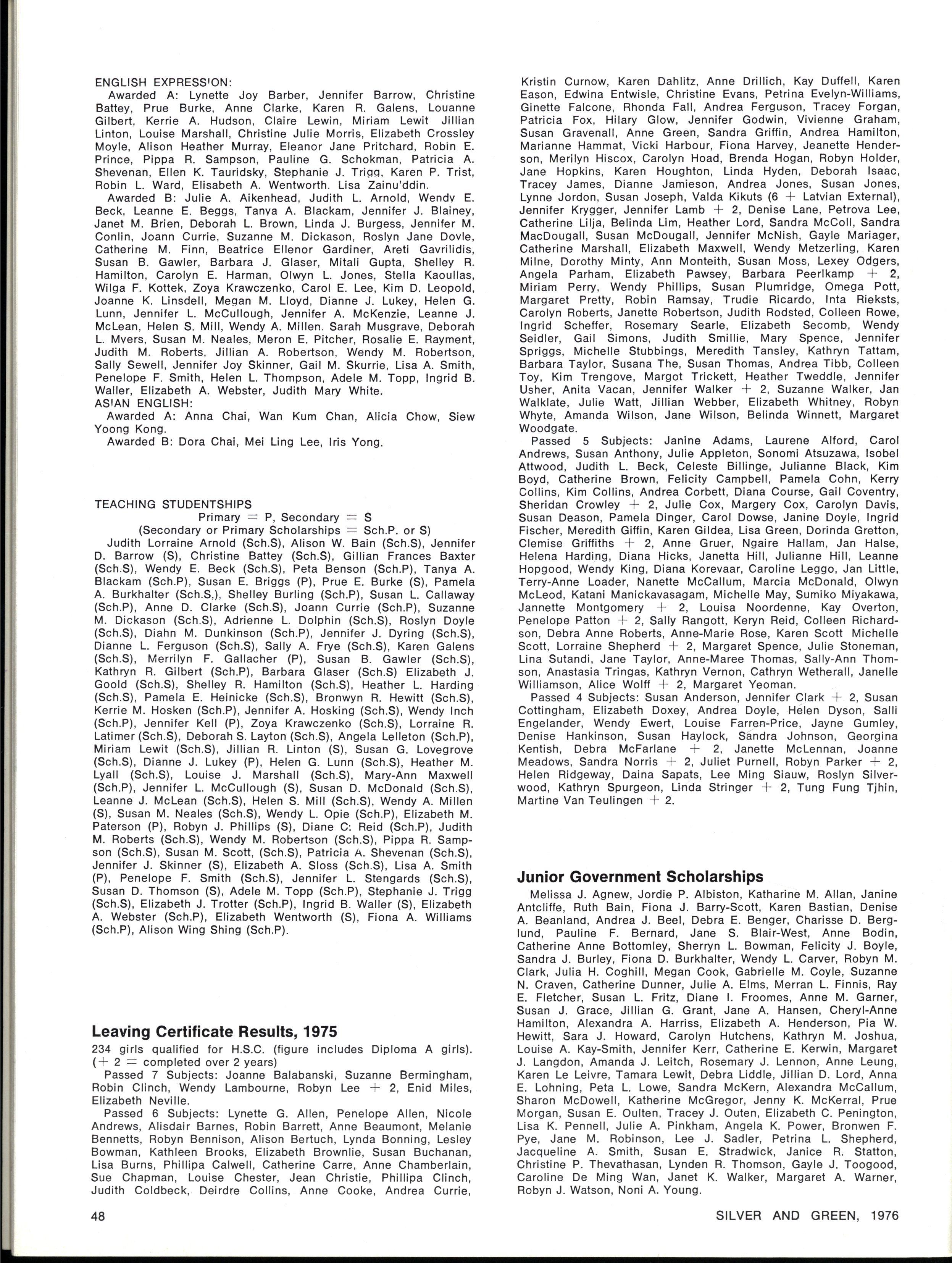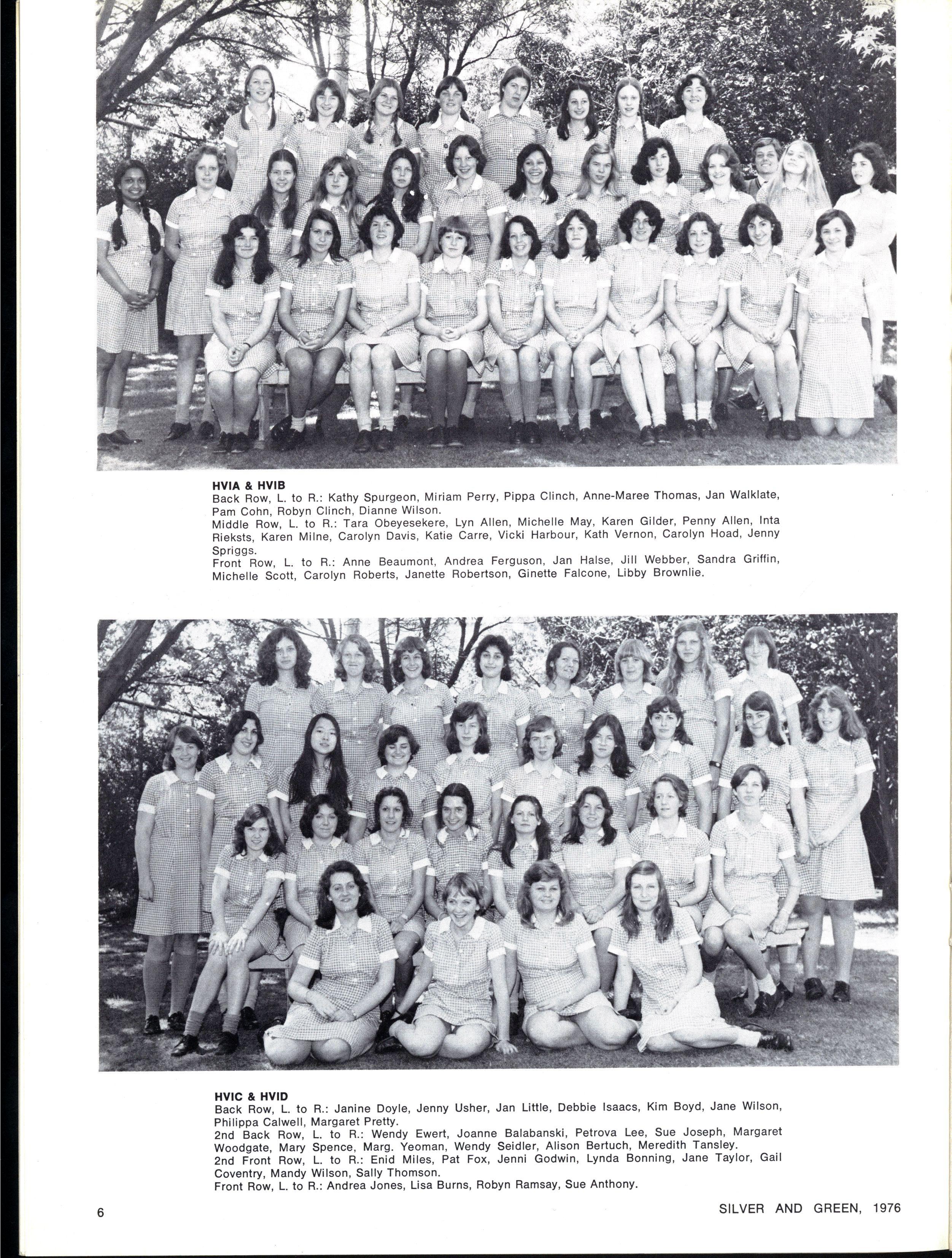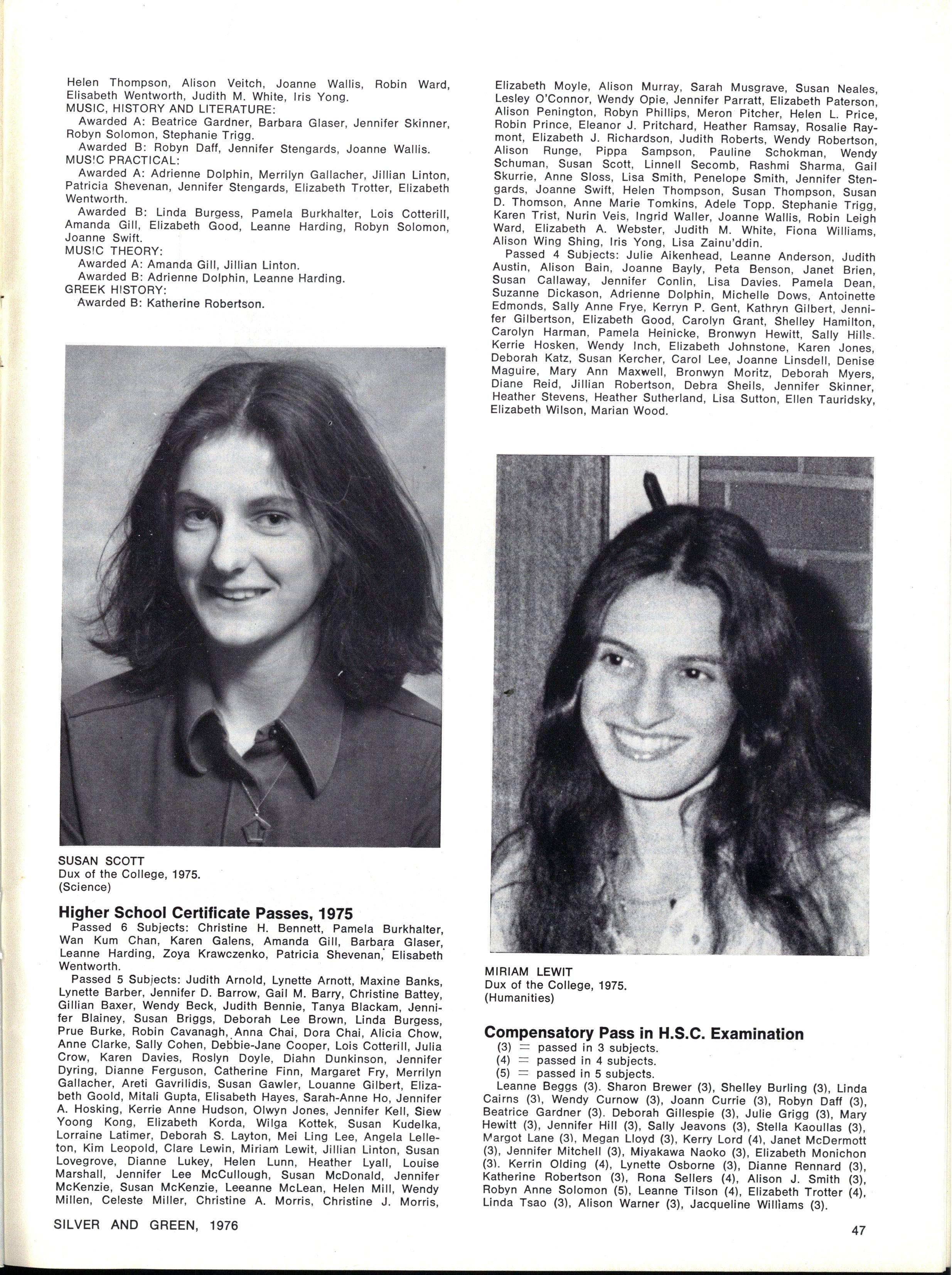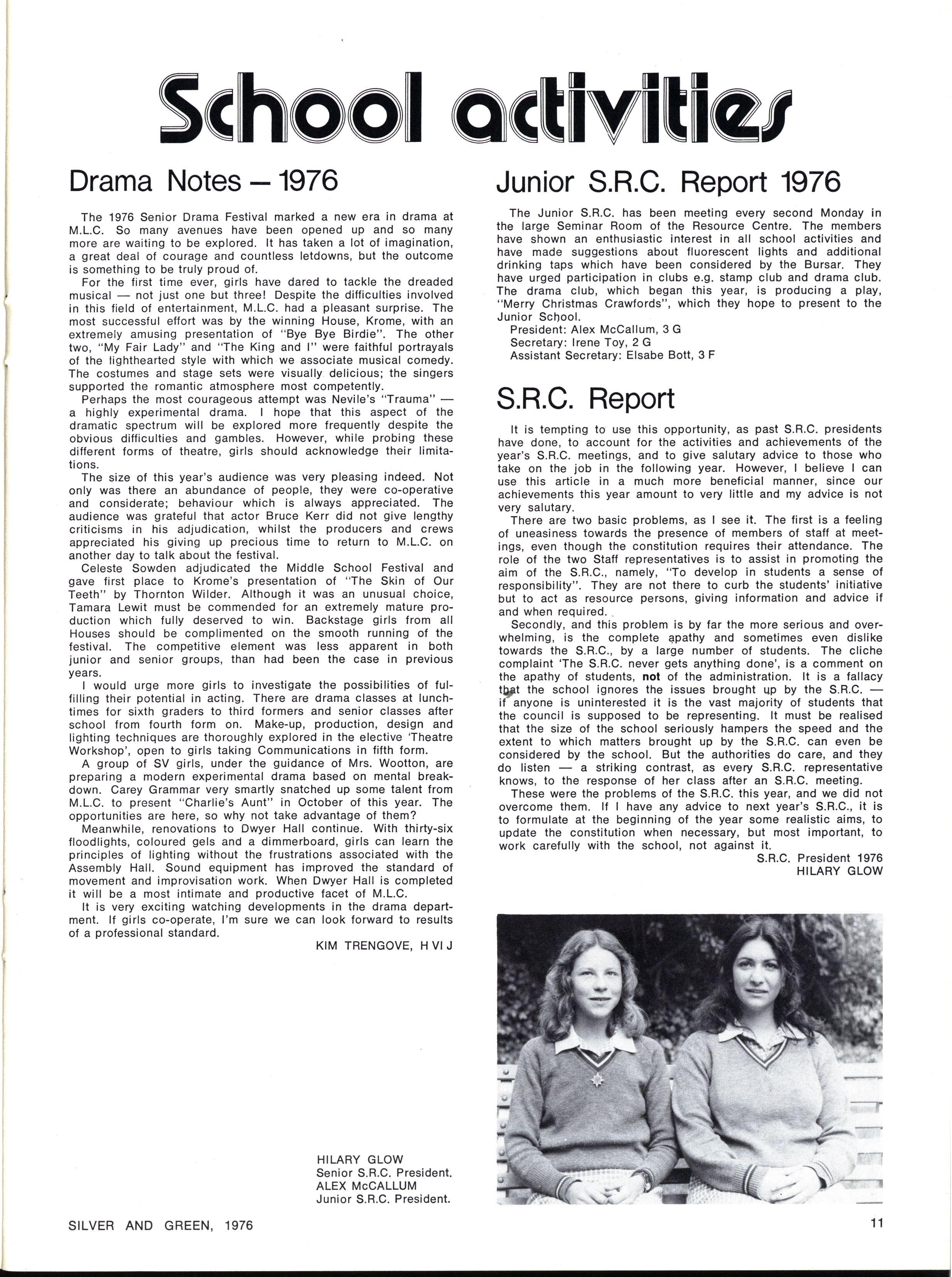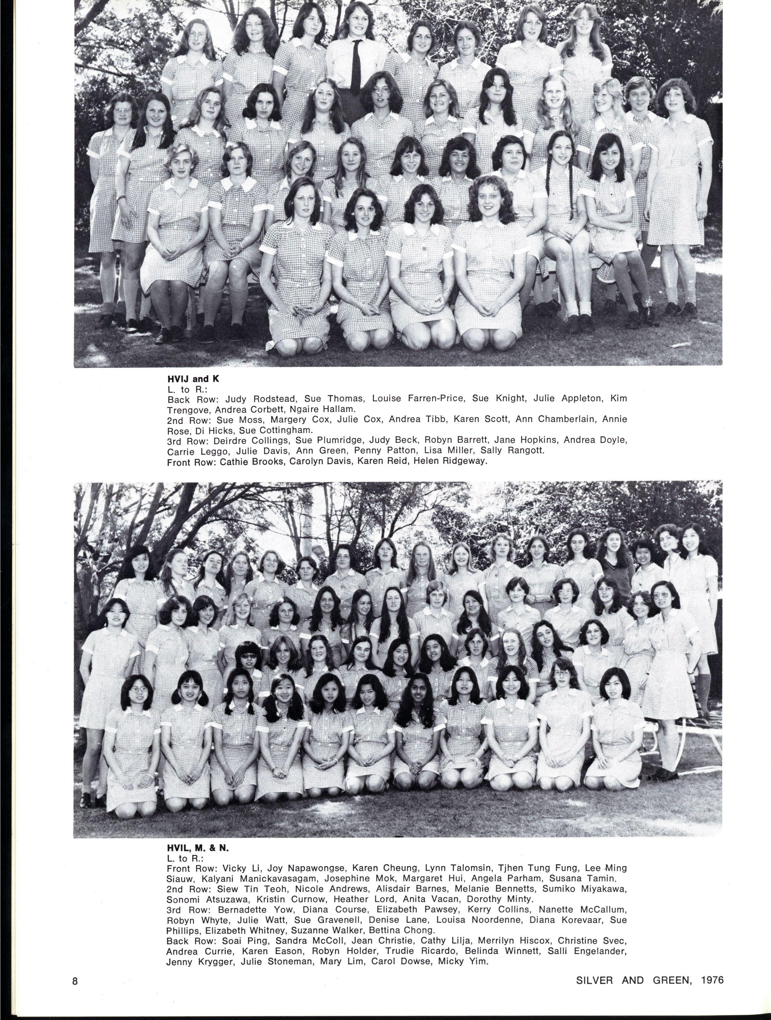 JOINT SCHOOL HEAD PREFECTS: Julie Cox, Ginette Falcone SILVE R AN D GREEN , 1976