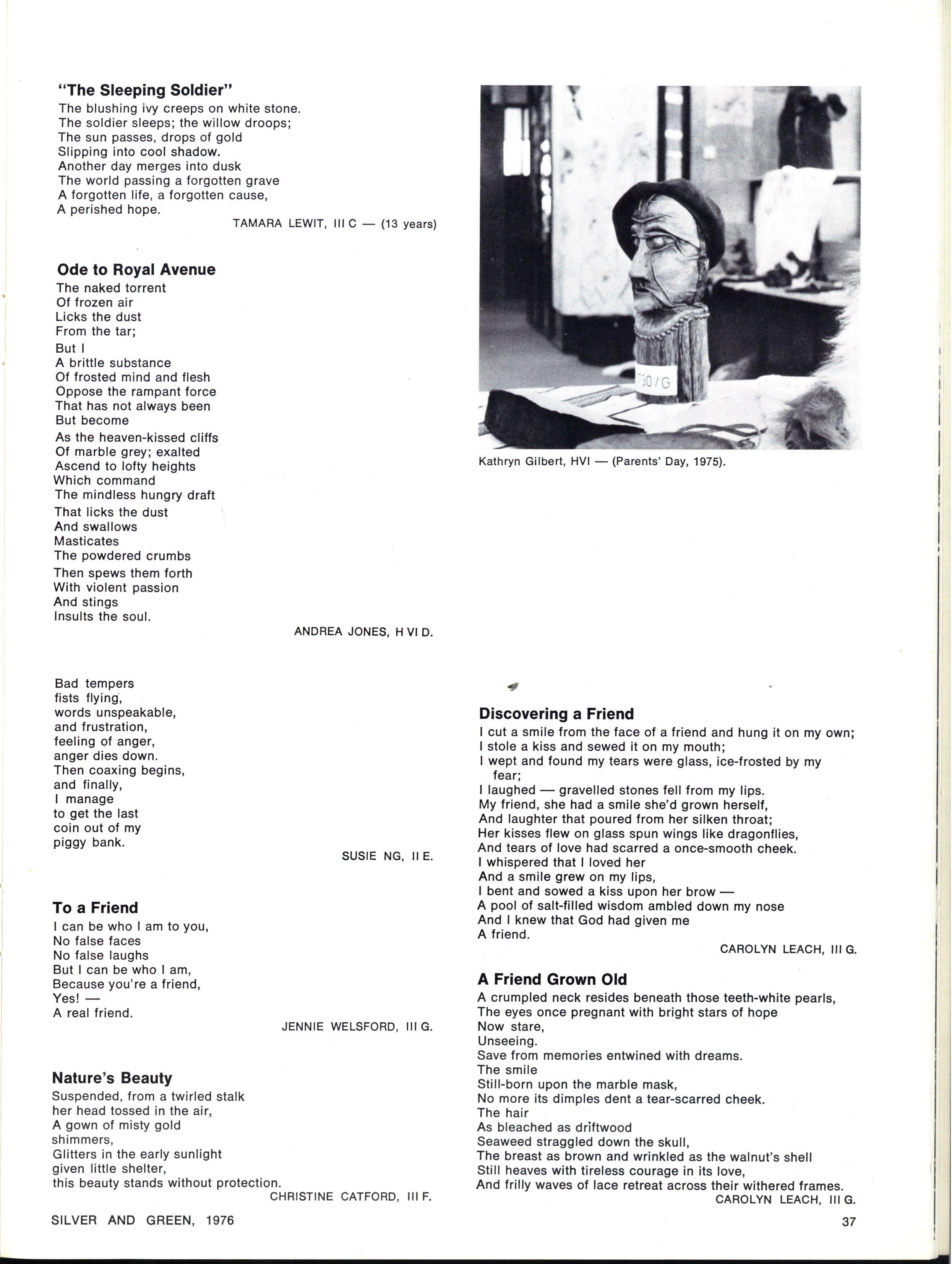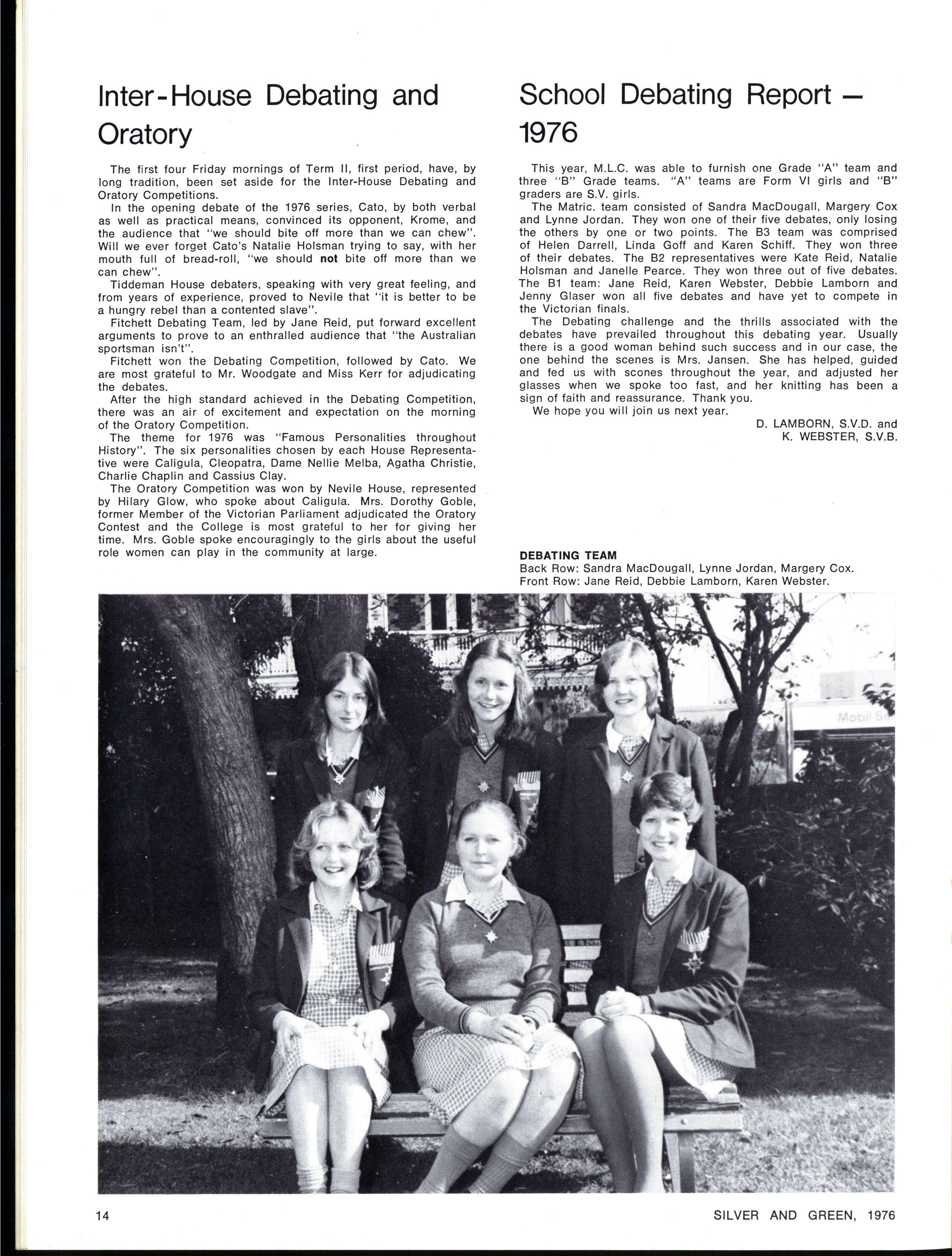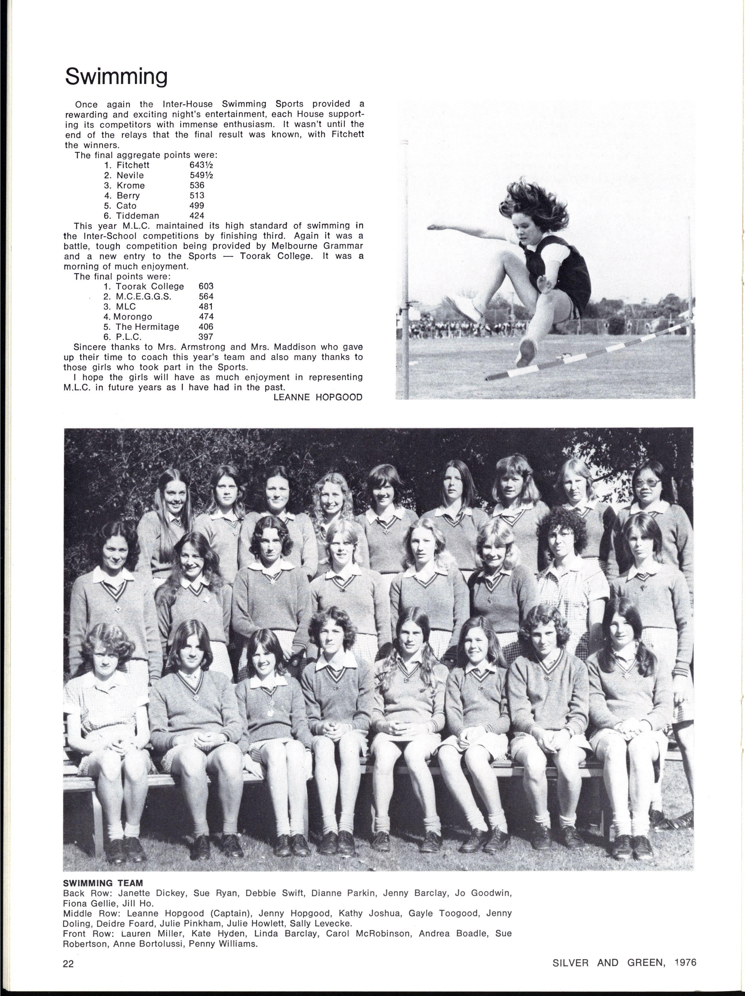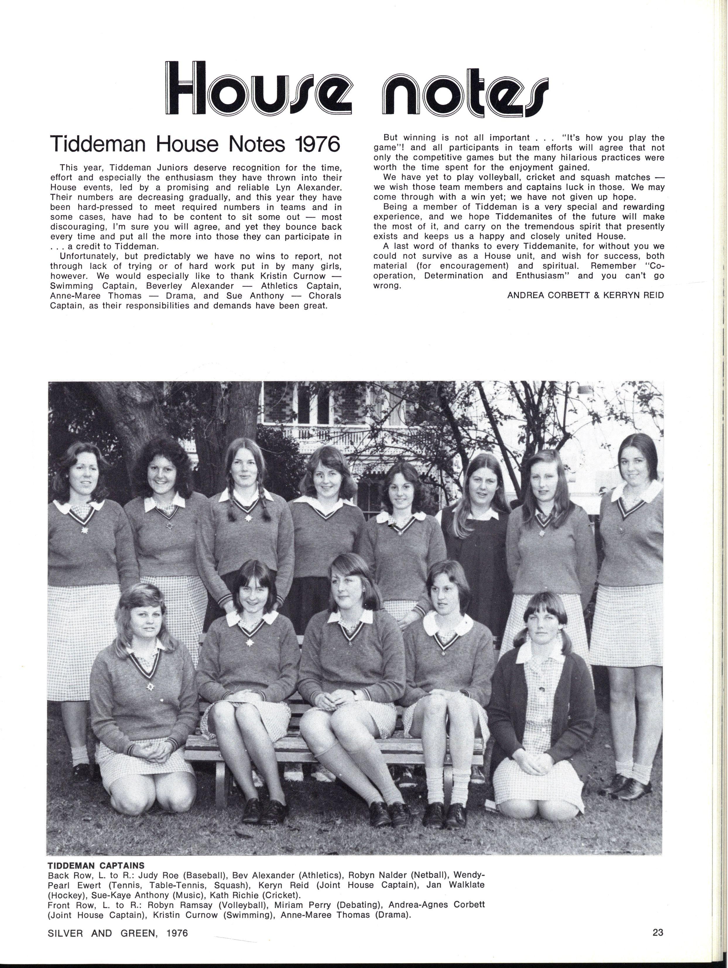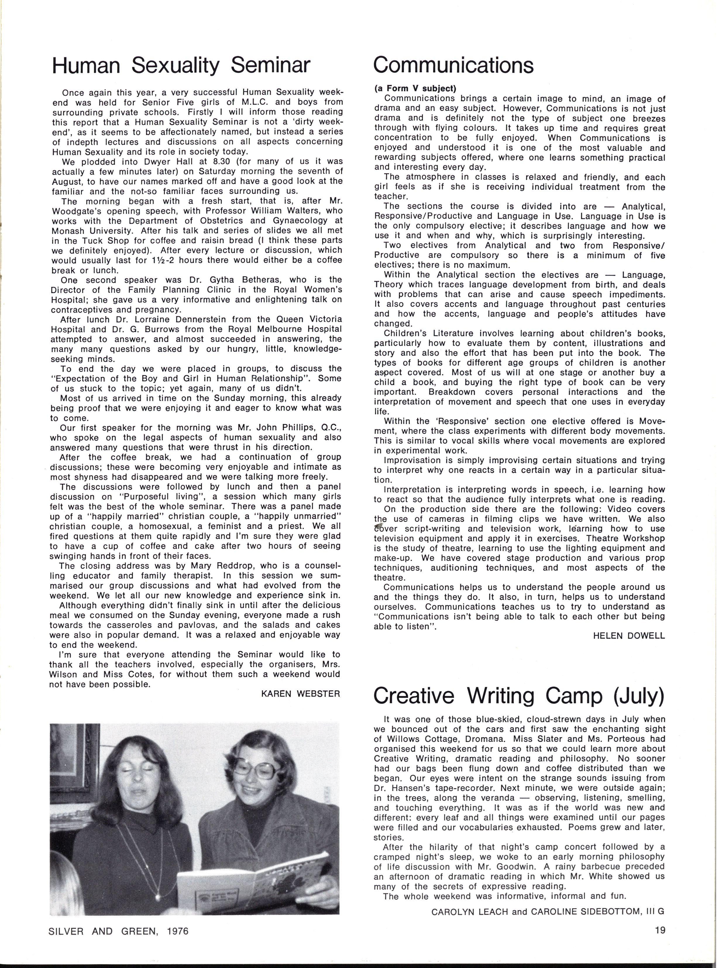 JOINT SCHOOL HEAD PREFECTS: Julie Cox, Ginette Falcone SILVE R AN D GREEN , 1976