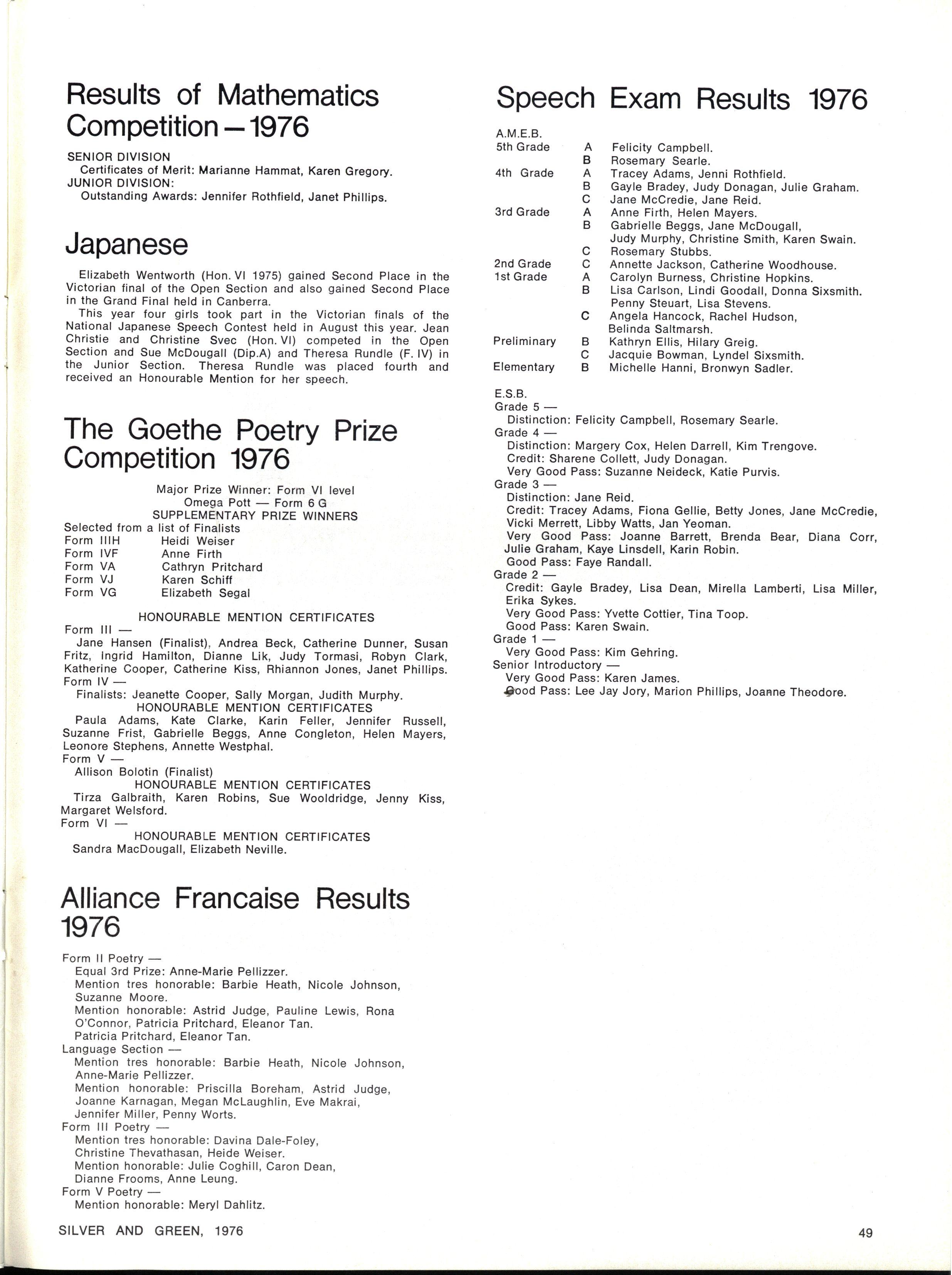Anne Firth IV F has been selected winner of the Dorothy Dwyer Memorial Award in 3rd Grade Speech and Drama, by the Australian Music Examinations Board
