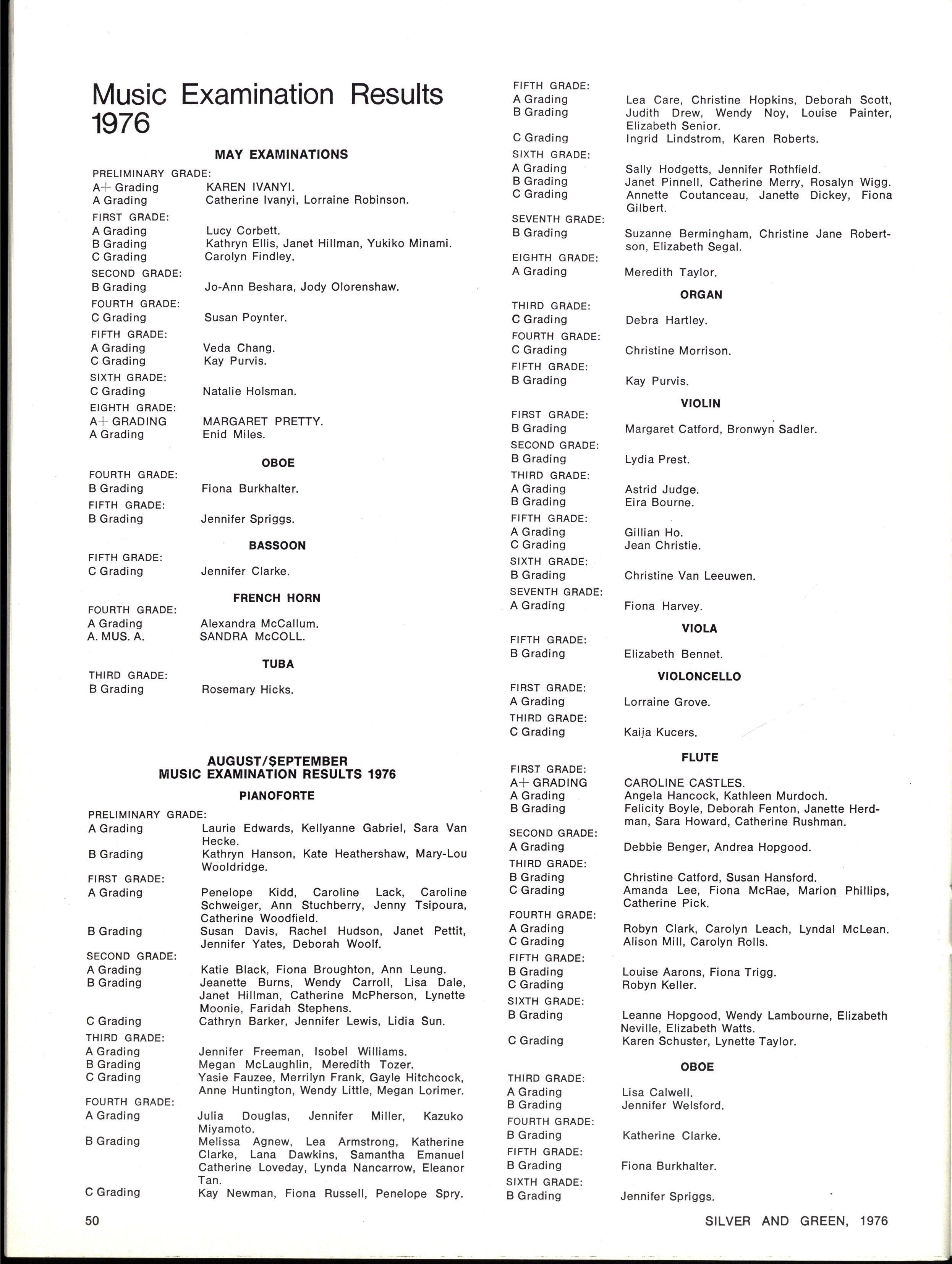 Music Examination Results — September Theory