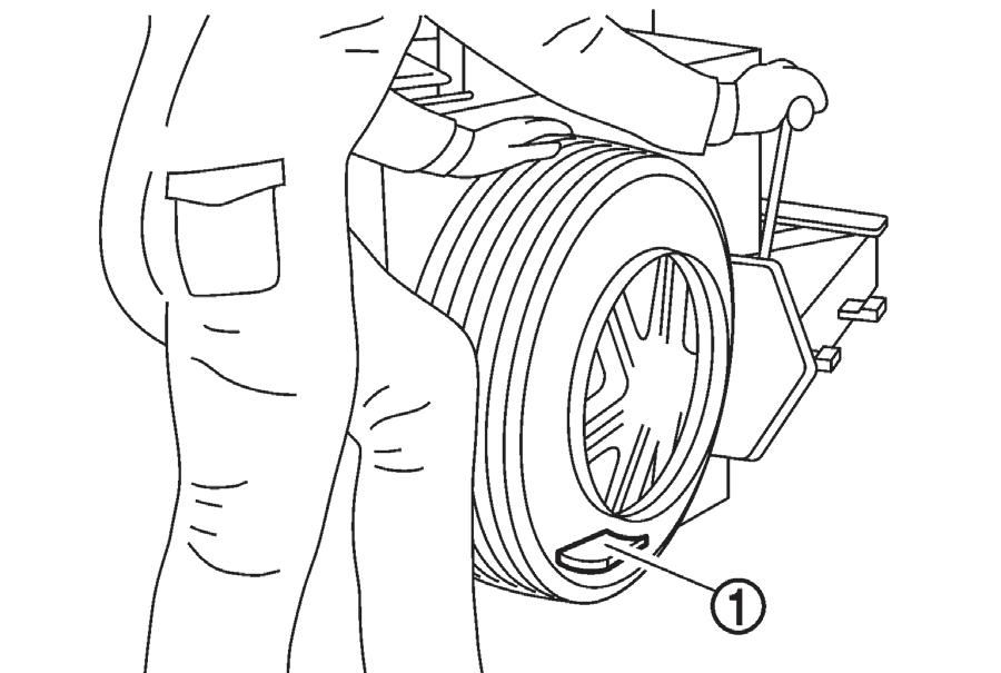 • Verify that the tire pressure sensor is at the bottom of the tire, as in Fig. 2, while performing the above.