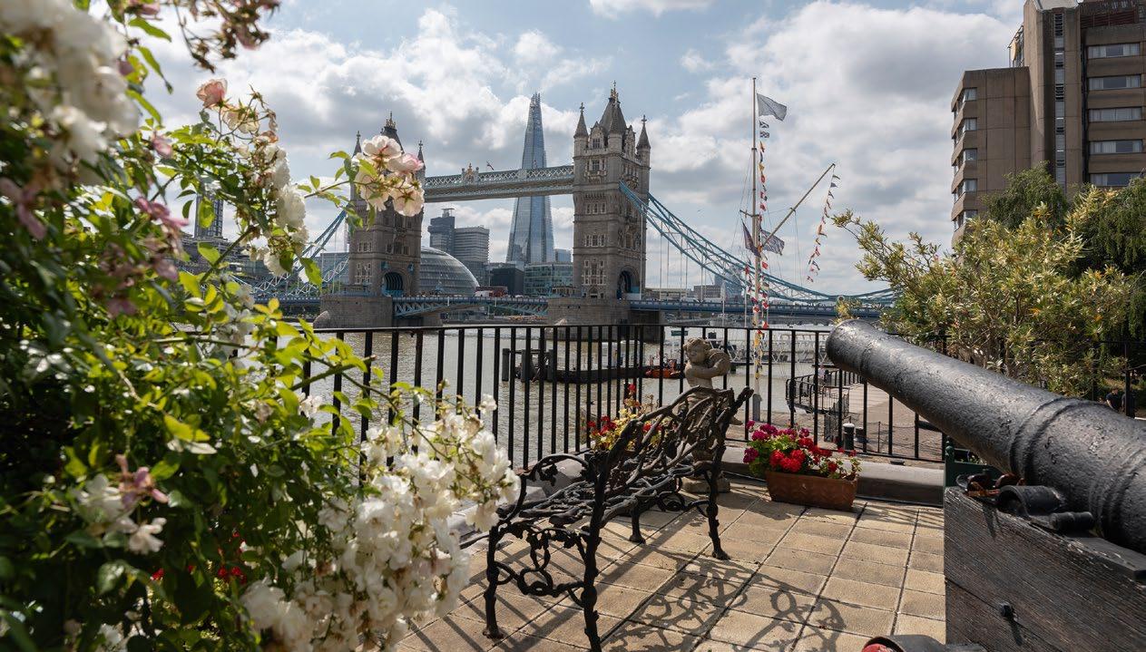 Soane. Built directly into the dock walls, it is surrounded by water on two sides and offers uninterrupted views of Tower Bridge and the Shard beyond. The grounds were designed and planted with input from the landscape designer Todd Longstaffe-Gowan in a formal country-house-garden style.