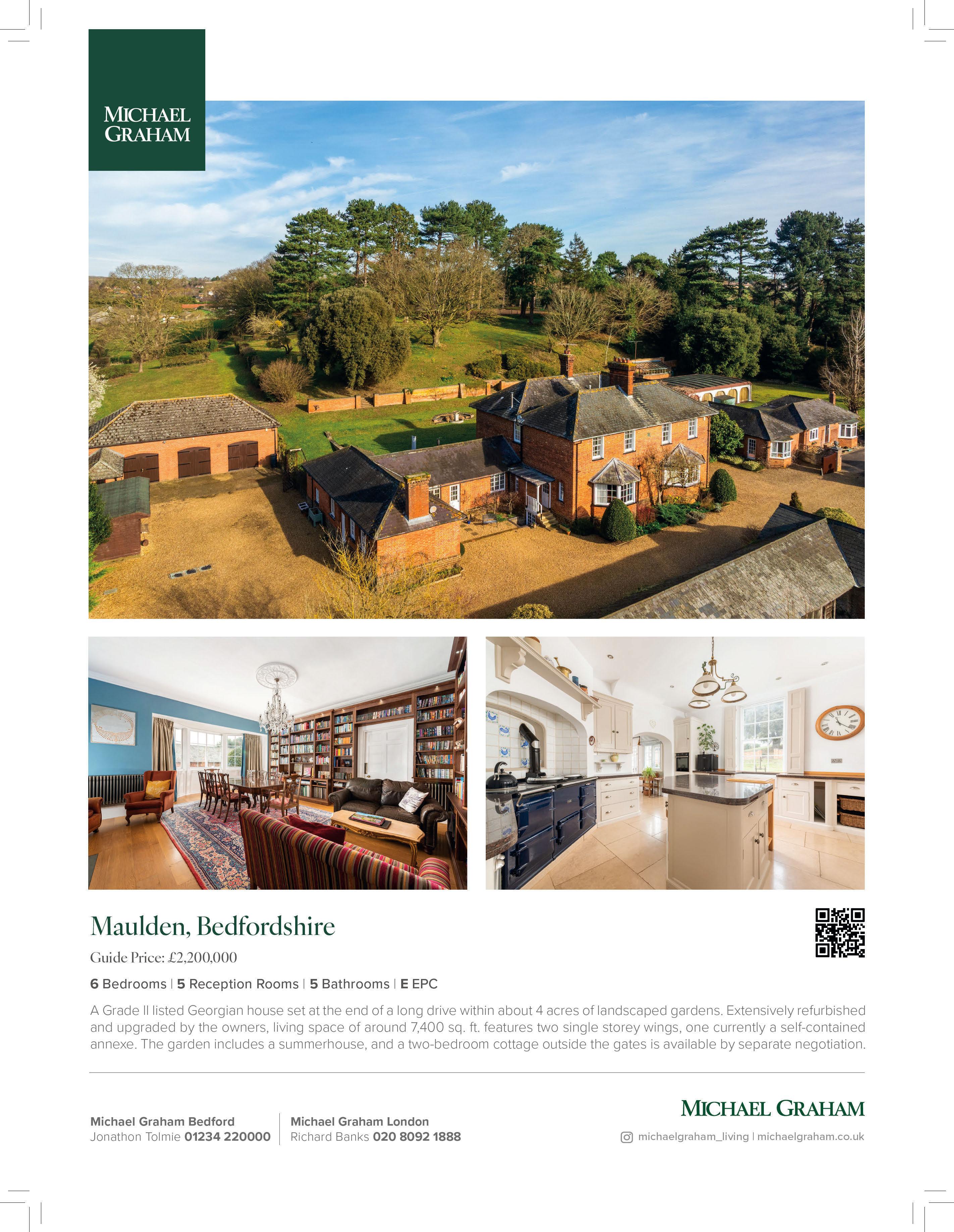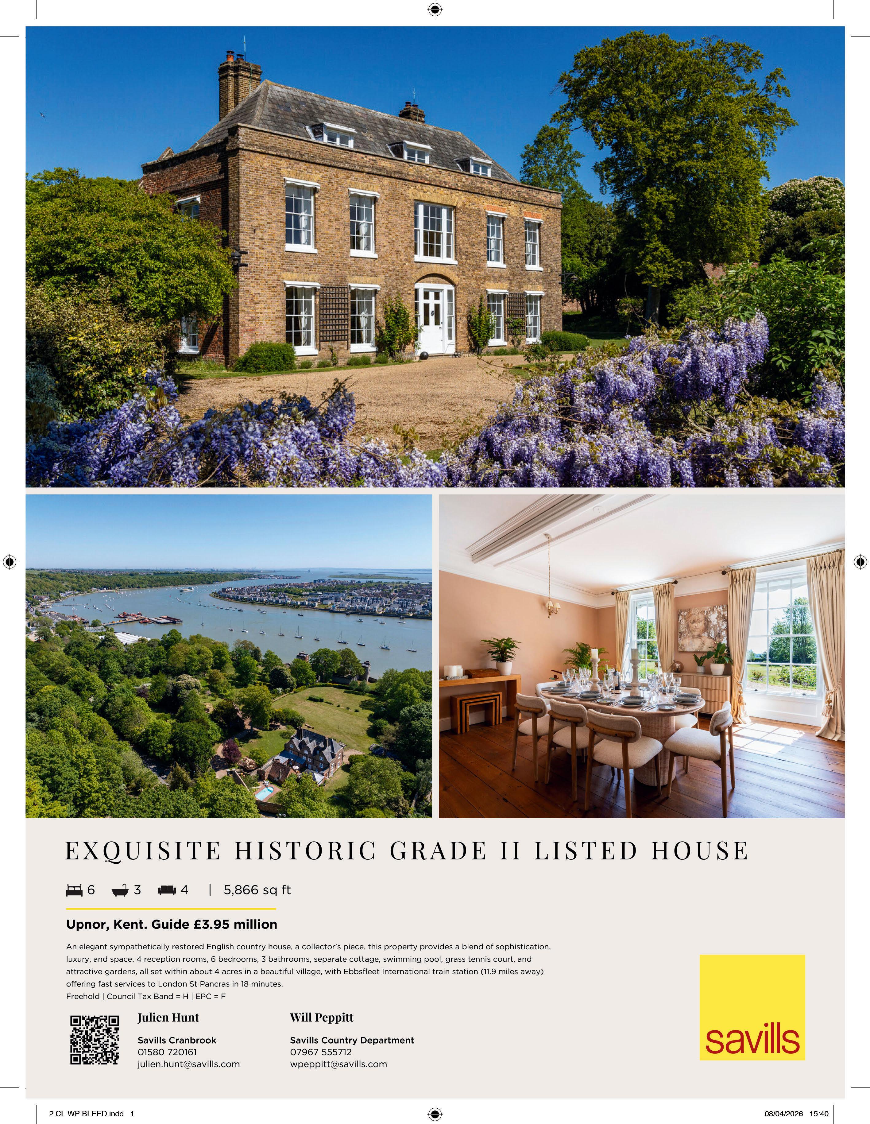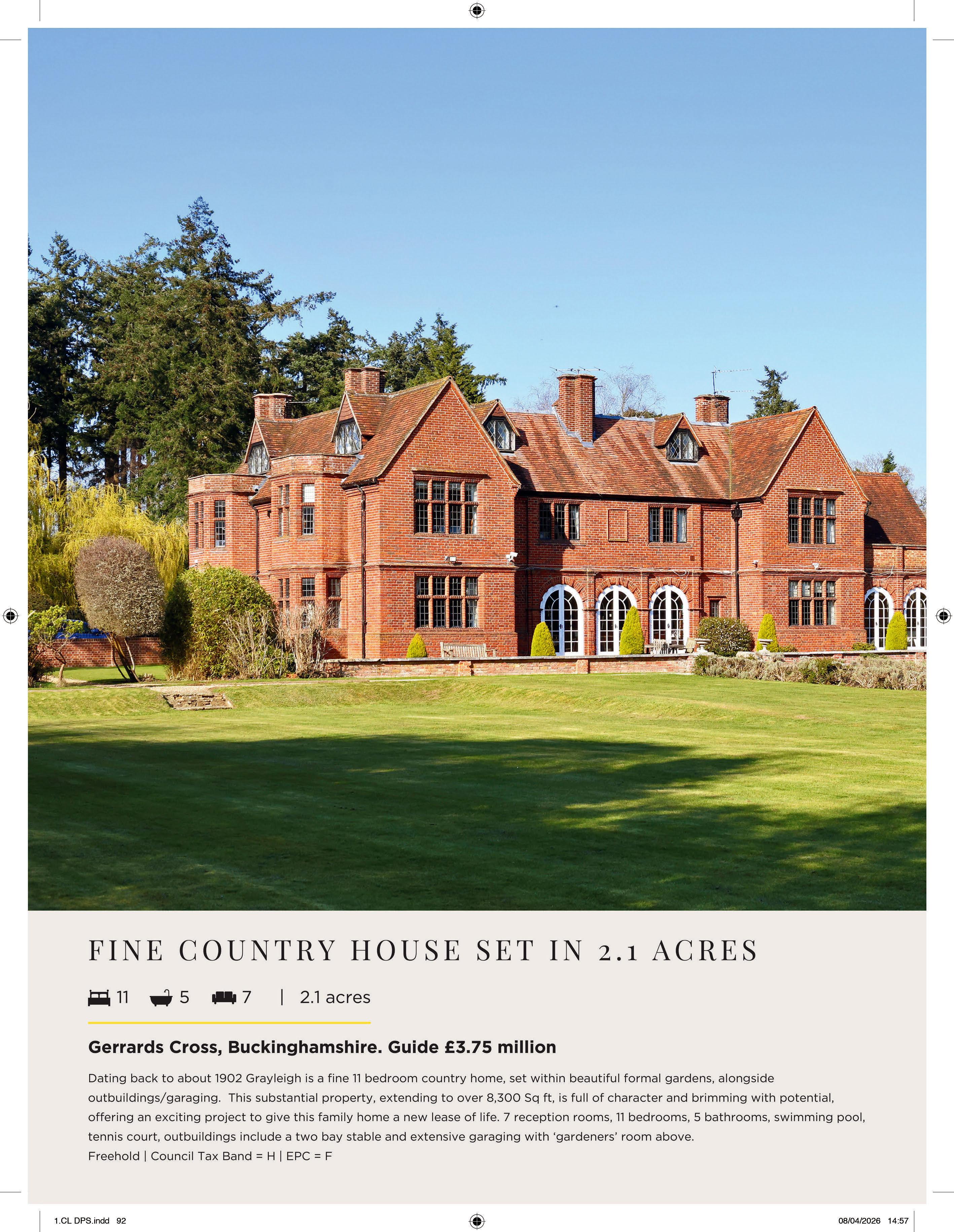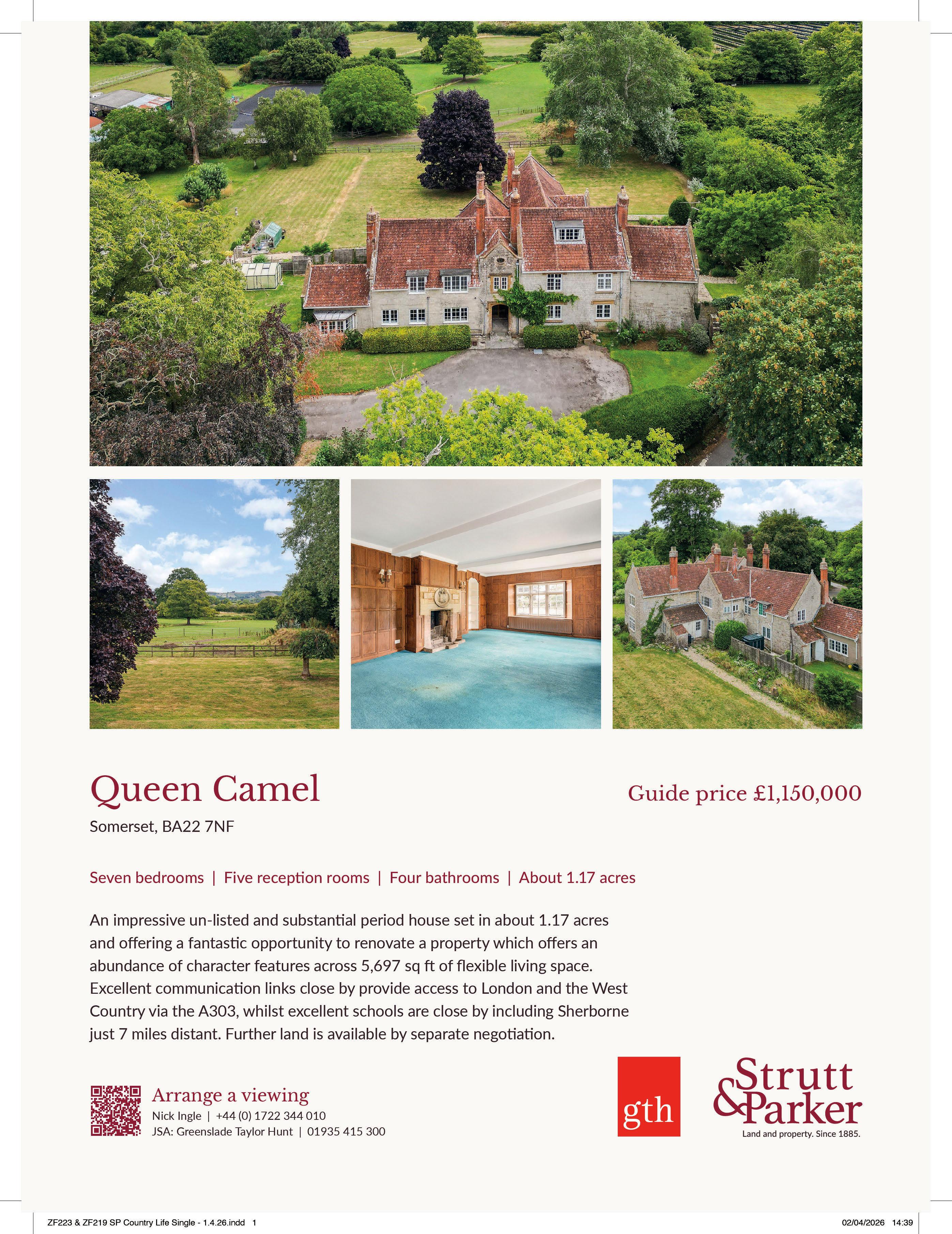Grade II-listed Moreton House, in the village of Moreton Morrell (with views over countryside to the back), was built in the 18th century and altered in the 20th. Its limestone frontage earns plaudits and a brick wing adds interest. Inside, period features, including open fireplaces, proliferate. Connoisseurs of wine will be able to store it in the cellar and will be spoilt for choice for rooms in which to enjoy their Chablis or Pinot Noir, thanks to formal reception rooms with grand proportions, as well as smaller and cosier spaces. The seven bedrooms are spread over two floors, three of them particularly characterful, being in the eaves. Outside, wrought-iron gates with brick pillars signal to visitors that they have arrived, passing sweeping lawns and formal gardens with ornate box and yew hedging before heading inside. For fans of the Bard, Stratford-upon-Avon is only 8½ miles away. Butler Sherborn (01451 830731)