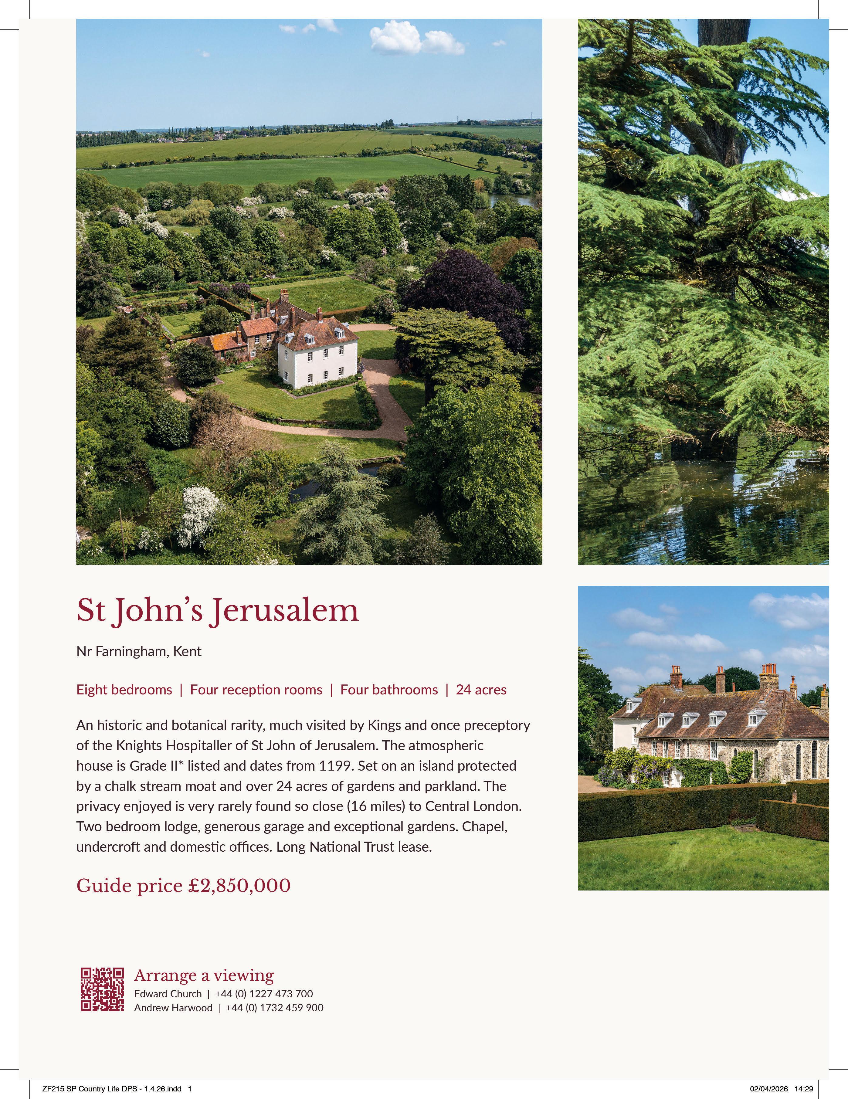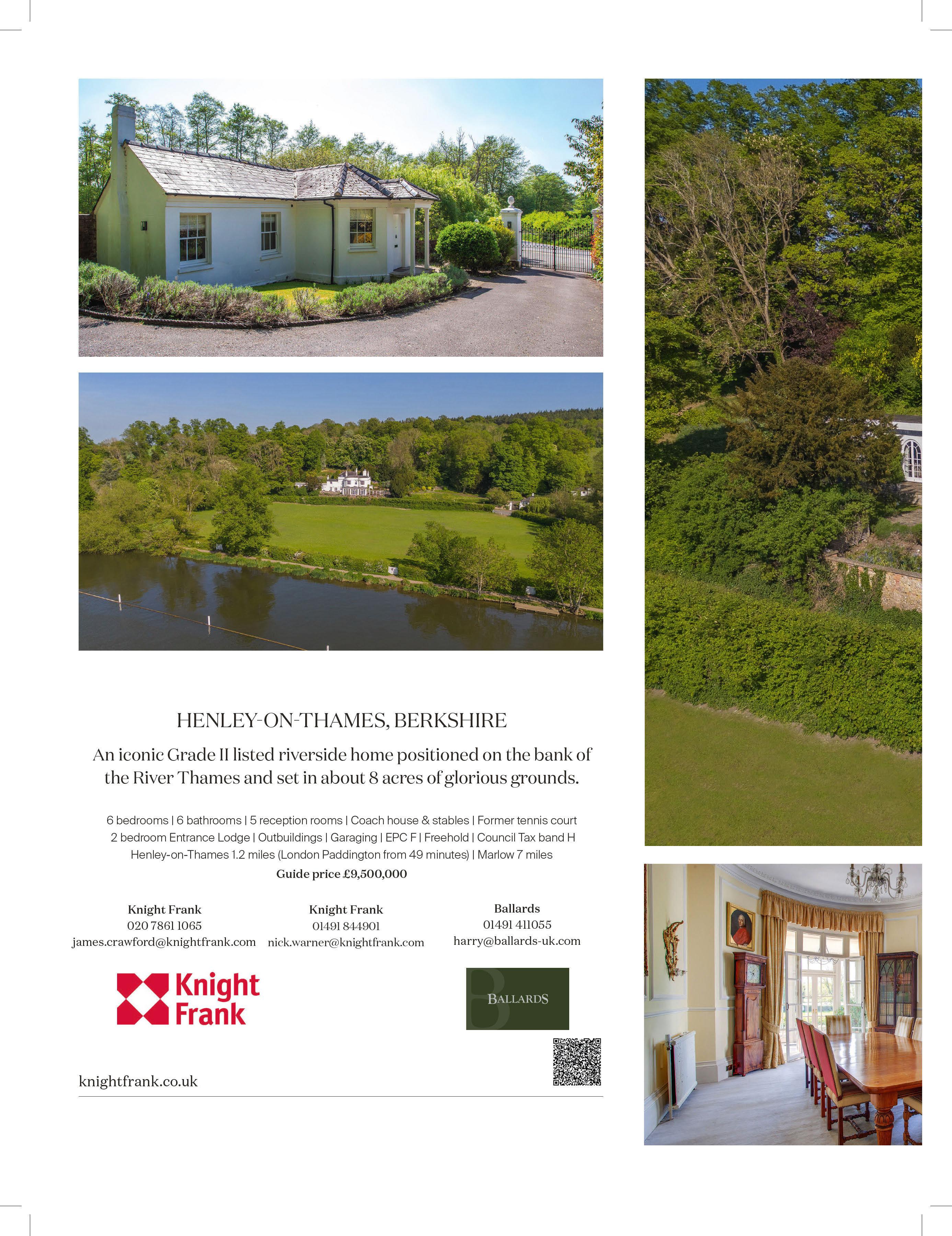 Samuel Richardson of Carter Jonas says that it will appeal to a ‘discerning buyer [searching for] a statement property, in a globally renowned city, with an iconic vista and almost unrivalled security’. The five-bedroom property is on the market for offers in excess of £15 million (020–7493 0676).