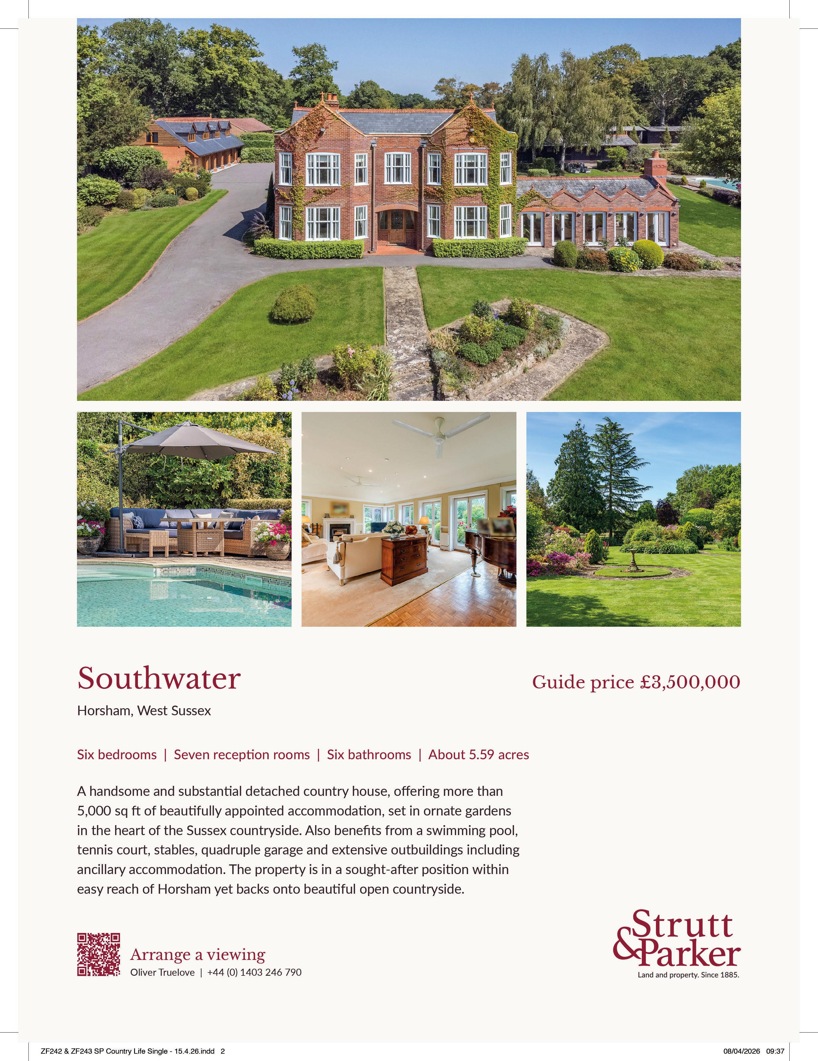 Woodshill House first took shape in the mid 17th century and, today, the Grade II-listed property offers 5,000sq ft of accommodation that includes five reception rooms and six bedrooms, meaning plenty of space for family gatherings and parties with friends. A useful asset for such gettogethers is the 18½ft by 10ft wine store in the cellar, which allows supplies to be replenished with ease when all the bottles at the soirée have run dry. Spaces on the ground floor for such occasions include the 19¼ft by 16¾ft drawing room, the 17ft by 16ft formal dining room, a kitchen filled with Shaker-style units and an Aga, plus a light and airy orangery that is part of a recent extension. This handsome house is set within almost three acres of grounds that include lawns, as well as grassy meadow areas. A hard tennis court and a heated swimming pool come in useful when those celebrations move outside in more clement weather. Woodshill House is a mile beyond the boundary of West Chiltington, which has a village shop and a butcher’s. Strutt & Parker (01403 246790)