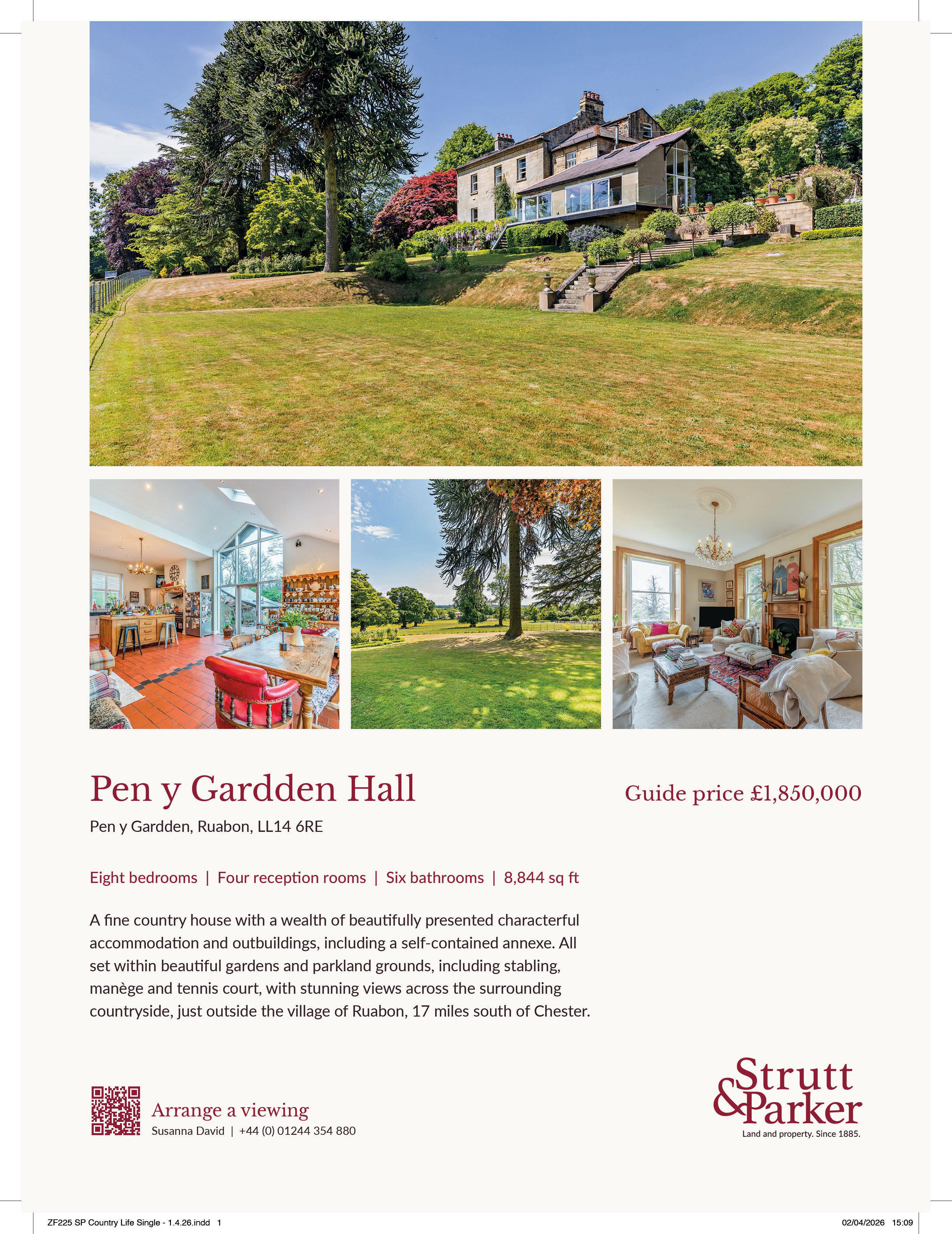Grade II-listed Bretforton Hall in the village of Bretforton is gloriously Gothic in style, having been built in the late 18th century and altered about 100 years later. Unusually, the east corner boasts a three-storey water tower with a crenellated parapet. ‘Magnificent proportions [are] layered with glorious architectural finery complemented by beautifully landscaped gardens and grounds,’ enthuses the agent of a property that offers more surprises, such as a vaulted drawing room that can double as a ballroom. ‘This is a brilliant family home and an entertainer’s dream to truly wow your guests—wine and dine in the beautifully proportioned dining room, whip up a pre-dinner cocktail in the tower bar and... dance the night away in the ballroom,’ continues the agent of this six-bedroom house. Add a wine cellar and Bretforton Hall does look to be the real deal. Set in about two acres, there is even a swimming pool—of course! Morgan Aps (01905 384848)