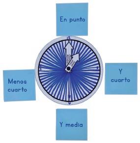Usar un reloj para decir las medias horas o los cuartos de hora