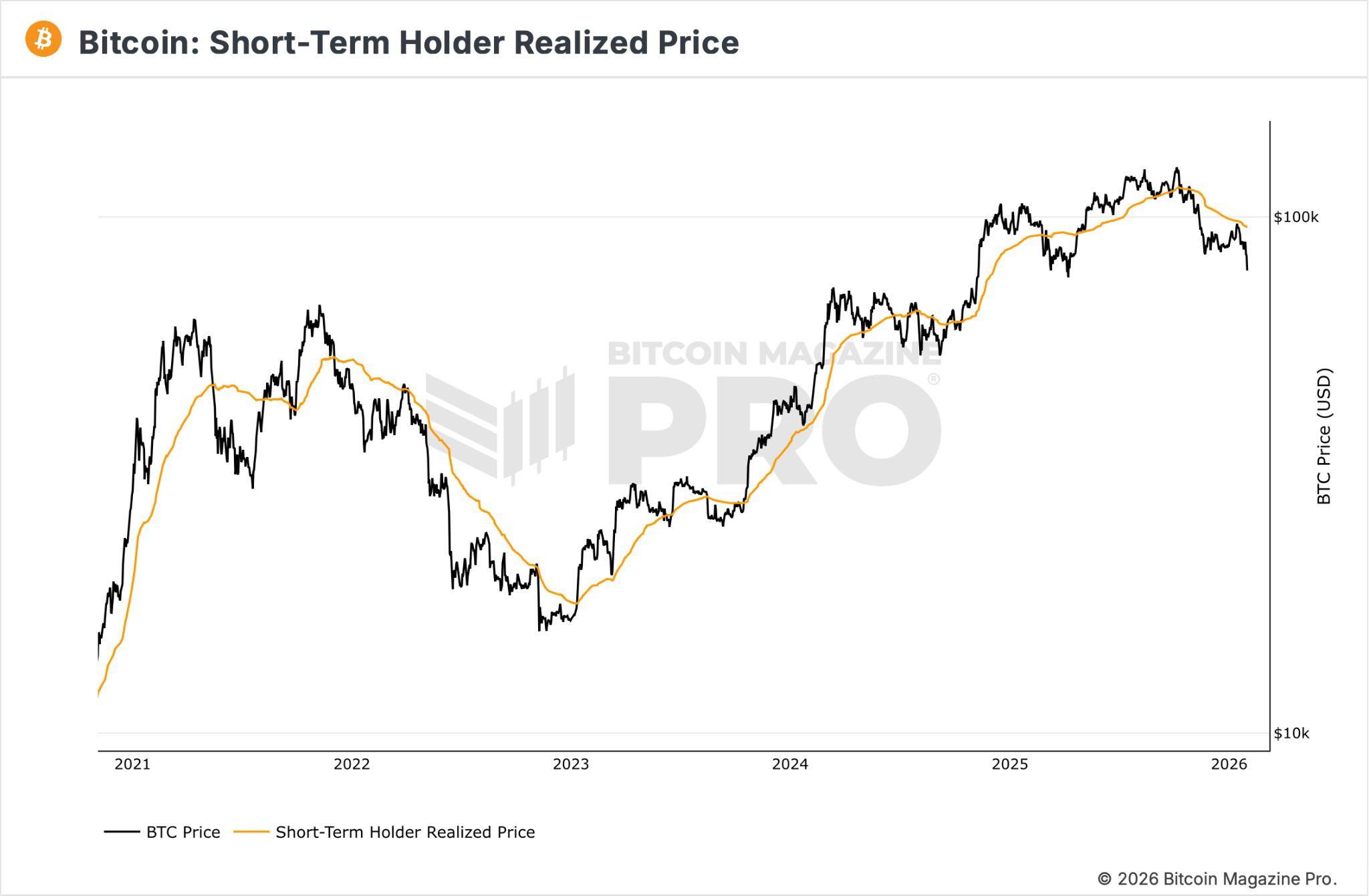 圖5:比特幣價格與短期持有者實現價格( 20212026)
