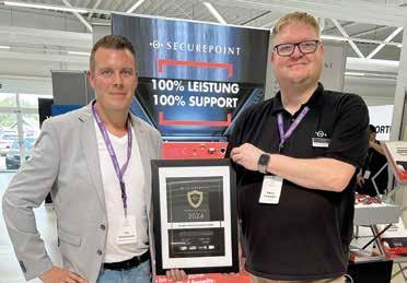 Marco Fangmann (Securepoint) übergab an Tim Hasselbusch (Schäfer Informationstechnik GmbH) den höchsten Titel des Professional Partner 2024 von Securepoint.