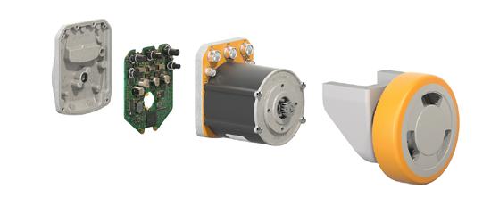 ez-Wheel Safety Wheel Drive (SWD) combines a wheel, gearbox, motor, safety encoder and safety drive, and reduces com ponent count by 50%. It's available in a light/medium SWD 125 model or a heavy-duty SWD 150 model, both with a load-supporting, cast-iron frame and IP66 housing. SWD 125 supports a 250 kg vertical load for applications up to a ton, and SWD 150 supports a 700 kg vertical load for applications more than a ton.