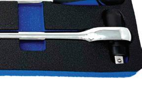 The GripEdge Tools 3/8” Drive RPT Metric & SAE Long Ball Hex Driver Sets, Nos. BHBM6LS and BHBS6LS, feature Rounding Prevention Technology that provides up to 50 percent more torque on new fasteners compared to standard tools. The metric set, No. BHBM6LS, includes sizes 4mm, 5mm, 6mm, 7mm, 8mm, and 10mm, while the SAE set, No. BHBS6LS, includes 5/32”, 3/16”, 7/32”, 1/4”, 5/16”, and 3/8”. RPT Ball Hex geometry allows up to a 22.5-degree pivot angle. Each bar is formed from S2 steel and precision-machined to reduce thickness and increase access to hard-toreach areas, and each socket has an overall length of 6”. The sockets feature large, stamped, ink-filled size markings and come in an EVA foam tray with size markings.
