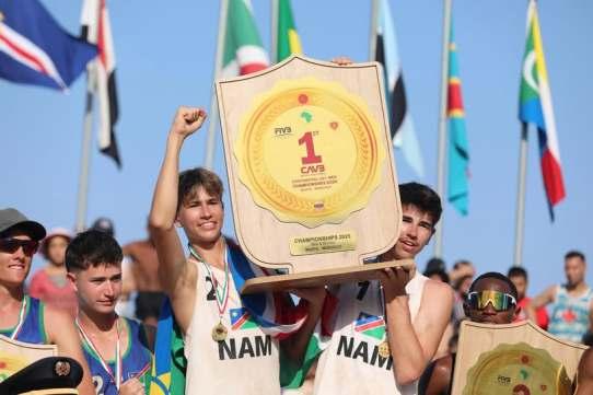 The brothers Max and Jura Krafft delivered a historicperformancetoscopethegoldmedalafter a stunning win against Mozambique's Ednilson JoseTivane and Helton Guvoafter registering a 20 (21-15,21-17) in the final to qualify for the International Volleyball Federation (FIVB) U21 Beach Volleyball World Championships to be hosted by Mexico in October This comes after their success at the Confederation of African Volleyball (CAVB) Continental U21 Championships, where they clinched the country's first gold medal at theAfrican showpiece, that concluded in Morocco's Martil last weekend. The Krafft brothers beat Cameroon 2-0 (21-13, 21-11), Morocco 2-0 (21-15, 21-16), Nigeria 2-0 (21-16, 21-14), and a second Cameroonian team 2-0 (2117,21-15)whilstKesselmannandBiederlackbeat theIvoryCoast2-0(21-14,21-13),Egypt2-1(1821, 21-14, 15-11), and Morocco 2-0 (21-19, 2220). Namibians Luca Kesselmann and Fabian Biederlack took home the bronze medal after