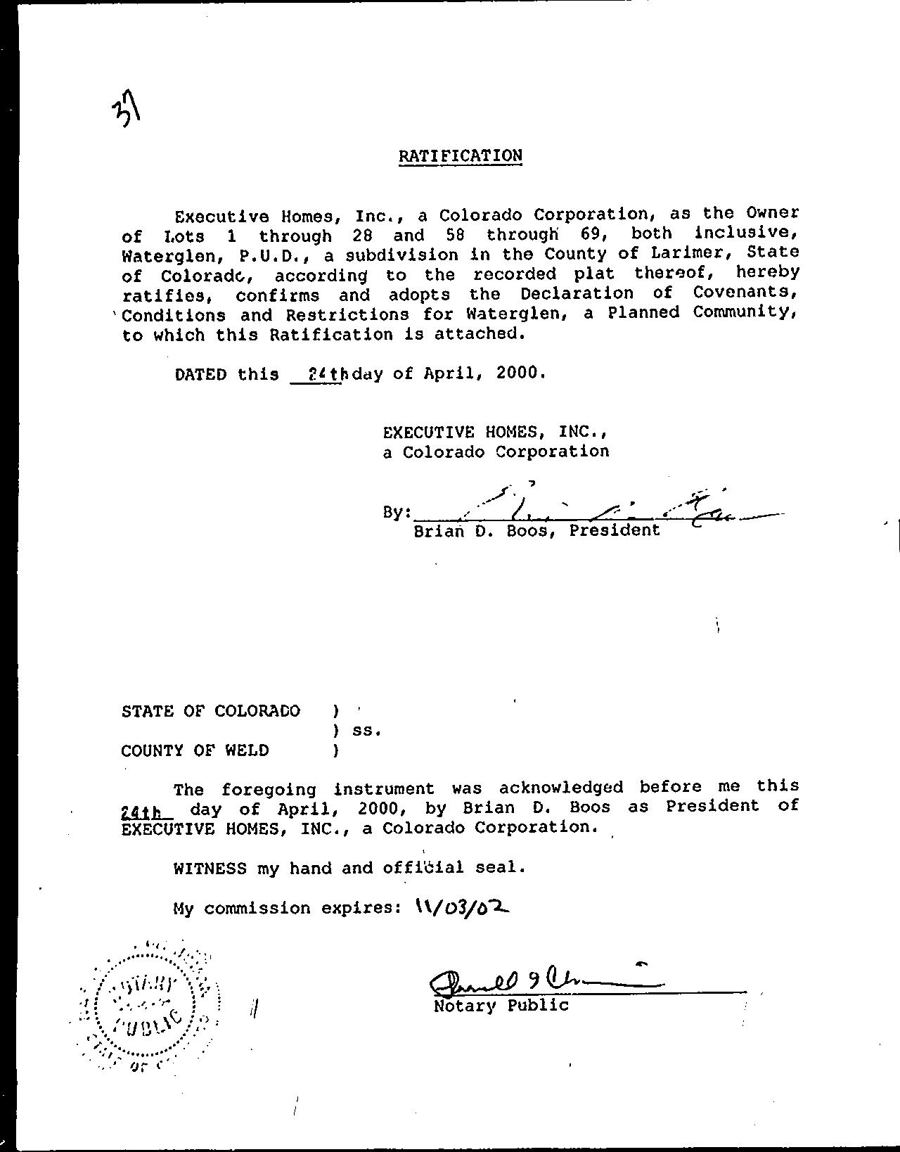 Legal Description : Lot 414, Waterglen Pud, Ftc
