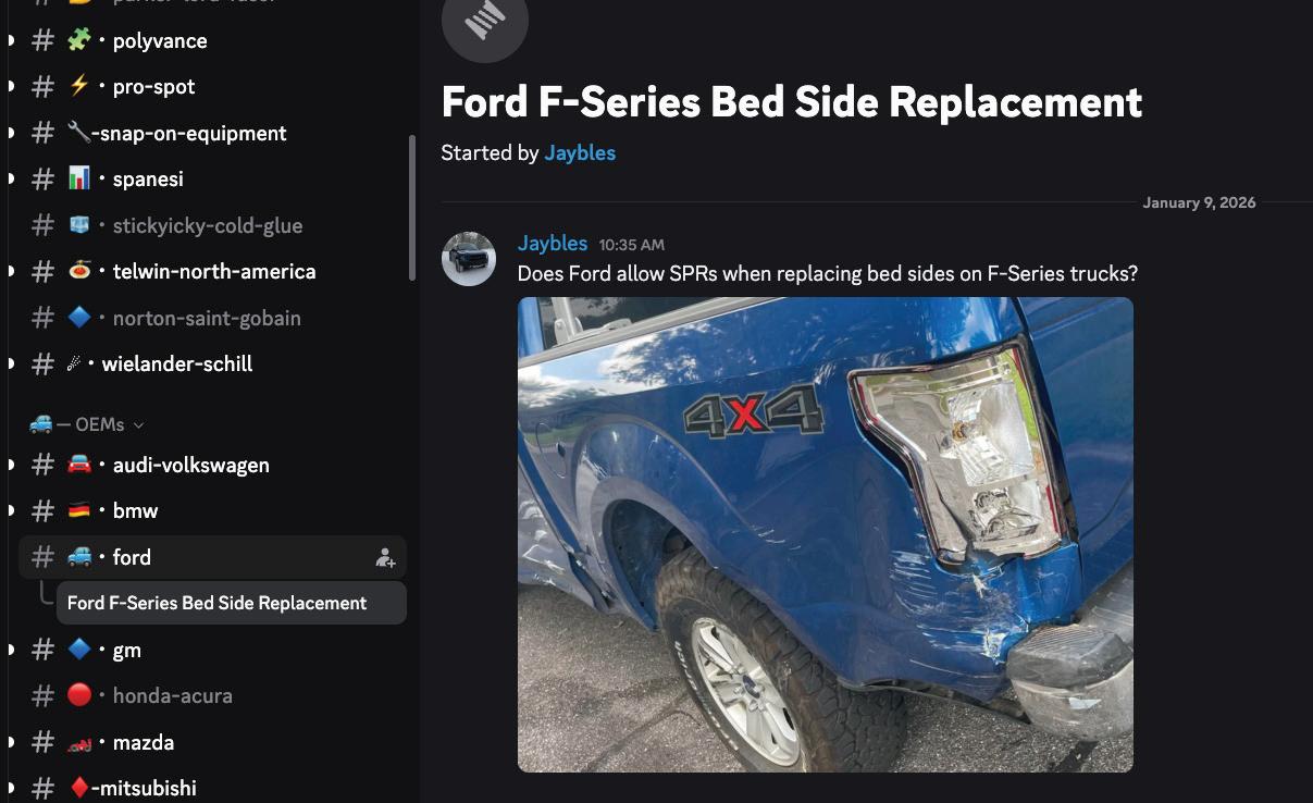 The next time an aluminum F-150 with a damaged bed side comes into your facility, don’t make any assumptions about which attachment method should be used for replacement. Access the procedure for that model and refer