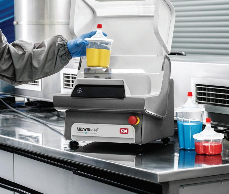 A stirring device integrated with the spraying cup is designed and tested together to deliver consistent results. A bonus is a cup system designed with indented sides. The sides will then act as a “propeller” to completely and fully mix the paint. Also important: having one lid that fits all cup sizes, to make the technician’s life easier and cut