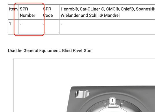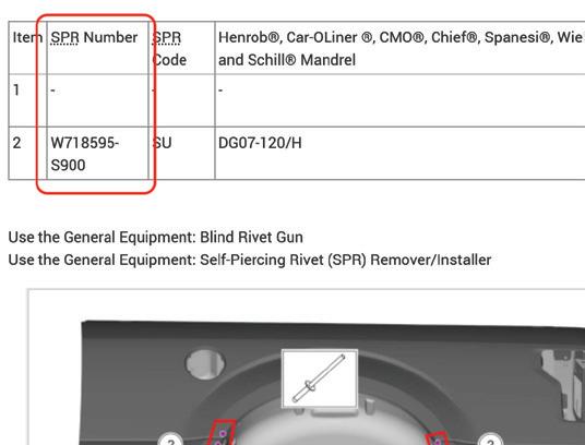 In Figure 2, you can see that this procedure lists a part number for SPRs. In this instance, self-piercing rivets would be allowed.