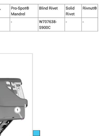 If there is a part number for SPRs listed in the box for a particular step, then self-piercing rivets are allowed. If there is NOT a part number listed (if the box under SPR number/ code is empty), self-piercing rivets are NOT allowed. It’s really that straightforward.