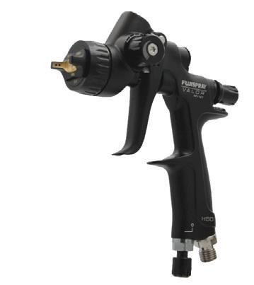 The Fuji Spray VALOR Mini H50 is built for localized refinishing and hard-to-reach areas. It features a lightweight, ergonomic body and optimized fan control for precise application of both base and clear coatings. Compatible with all major paint systems, the Mini H50 delivers consistent, high-quality results. Tip sizes range from 0.8-1.2mm. It is compatible with 3M PPS and other major cup systems and is suitable for use with waterborne or solvent-based coatings in high production facilities. It has fewer internal components for easy cleaning and maintenance.