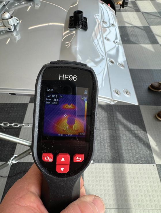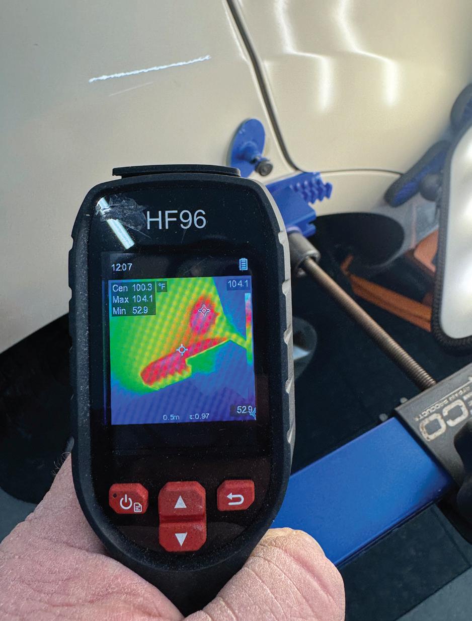 WHEN USING AN INFRARED THERMOMETER , place the tip close to the tab. Holding it too far back gives an average temperature, but you need to know the exact temperature under the tab. This is where an infrared camera really shines.