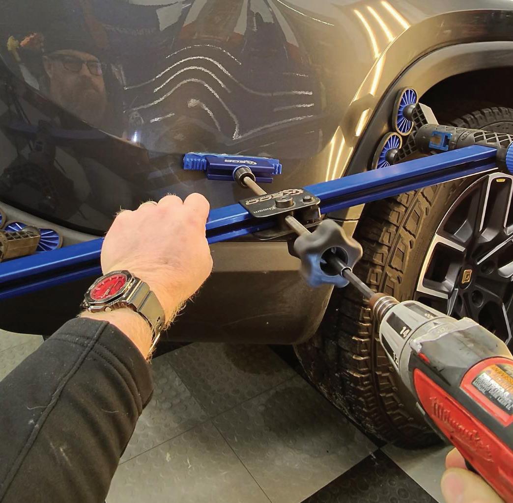 With glue pull repairs, the strongest areas you’ll encounter are what I call light structure — quarter panel wheel wells where multiple layers of metal come together, dog legs, and door jambs. Addressing these areas first helps relieve stress on the outer sheet metal.