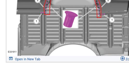 Let’s cover how to determine if the model you’re working on allows SPRs, or if blind rivets (or welding) are required. The key to knowing when SPRs can (and can’t) be used is found in the part number ‘boxes’ that are embedded in the procedure. Note: the following also applies to other procedures on F-150, other F-Series trucks, and aluminum Expeditions and Navigators.
