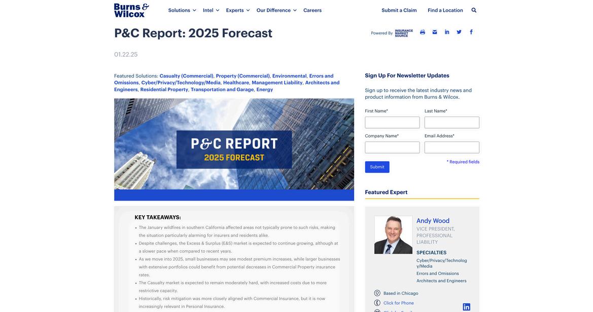 Andy Wood Vice President National Professional Liability Practice Leader Burns & Wilcox, Chicago, IL