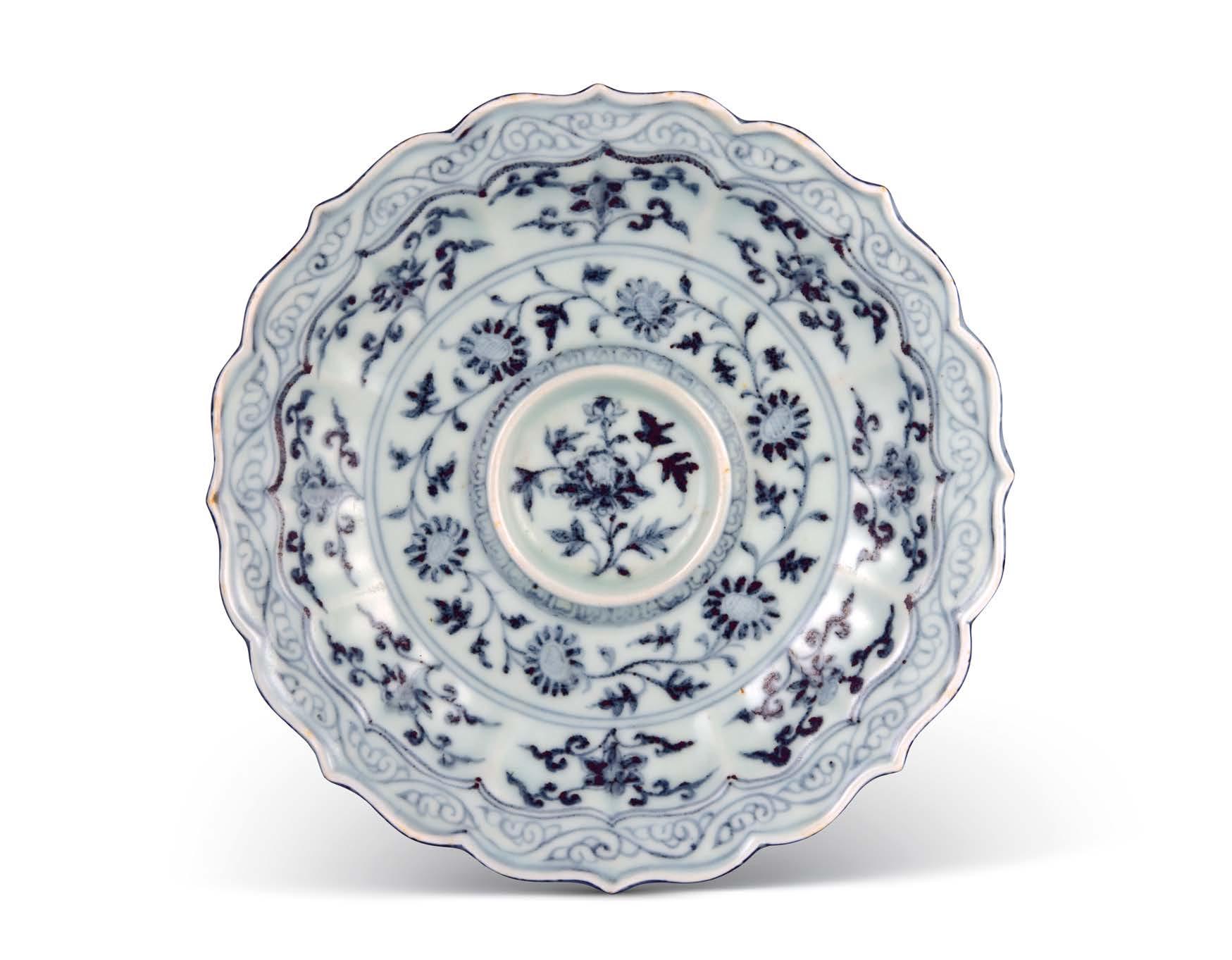 Imperial porcelains from the Hongwu period were painted in either blue-and-white or copper-red. According to Lu Minghua in Mingdai guanyao ciqi, Shanghai, 2007, p. 8, most of the heirloom pieces are copper-red decorated, and underglaze blue wares are much rarer.