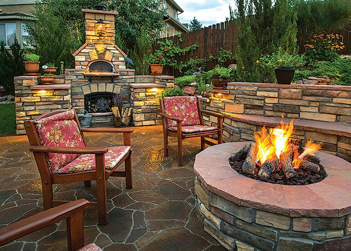are now wildly popular. Fire features provide a welcome place to relax and converse with guests after the sun goes down. And much to kids’ delight, a fire feature also paves the way for some postmeal s’mores.