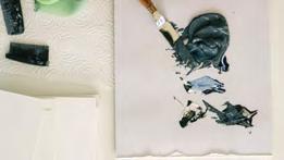 EXPLORES MINIMALIST GROUND. PAINTS MOVE ACROSS THE CANVAS, GIVING LIFE TO LAYERED,