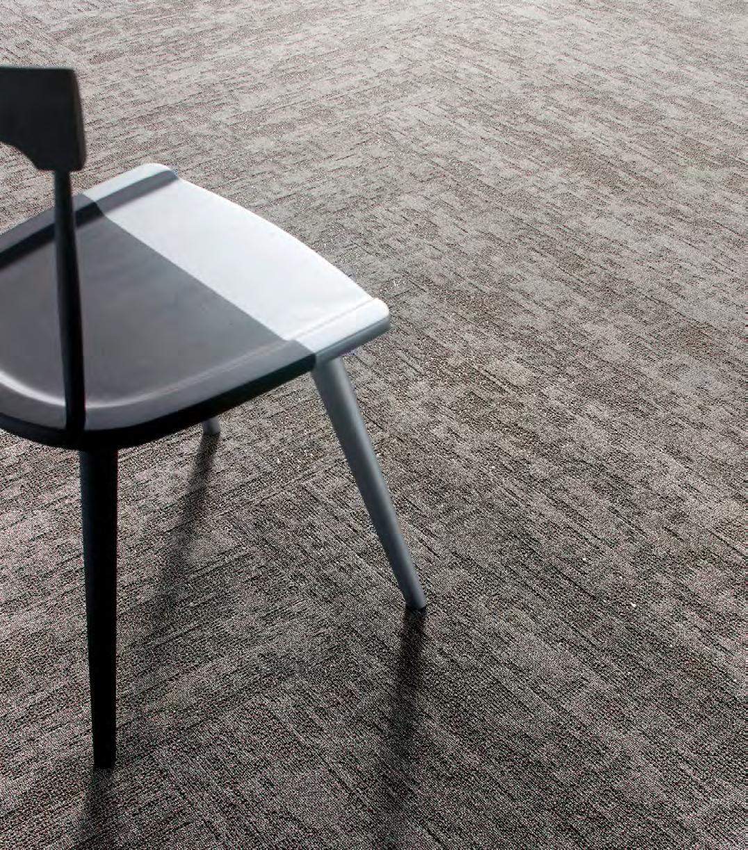 LIGHT AND SURFACE INTERACT IN TONAL CONTRAST. ABSTRACT ORGANIC VISUALS MIX MATTE AND GLOSS TO CREATE MONOCHROME AND SURFACE TONE. THIS UNIQUE RESILIENT TILE IN CONTRASTING FINISHES, EXPLORES THE VISUAL VARIATION DESIGNED TO CREATE SCALE THROUGH SUBTLE OR BOLD PAIRINGS. OFFERED IN 18X36 AND 9X36 TILES, THE 5MM PRODUCT CONSTRUCTION ALLOWS FOR INSTALLATION ALONGSIDE CARPET WITHOUT THE NEED FOR TRANSITION.