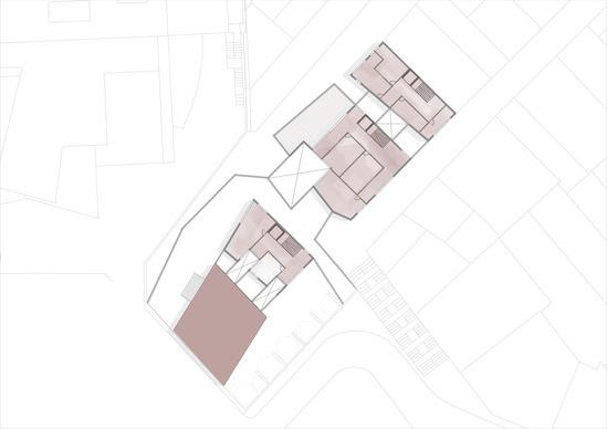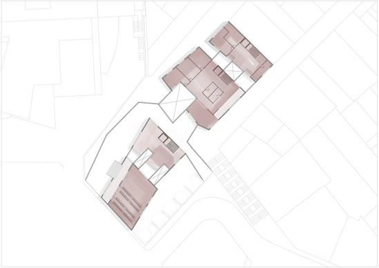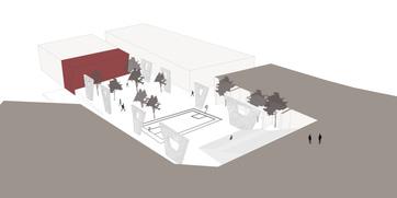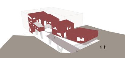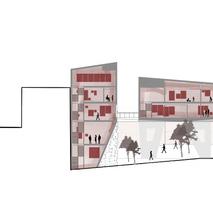 La planta baja se plantea como un espacio activo y abierto, destinado a acoger las principales actividades culturales y sociales, favoreciendo la continuidad con la plaza y fomentando su uso cotidiano. A partir de esta base, el edificio se organiza en cuatro bloques diferenciados, que fragmentan el volumen y permiten una mejor adaptación a la topografía, así como una mayor permeabilidad y relación con el entorno.