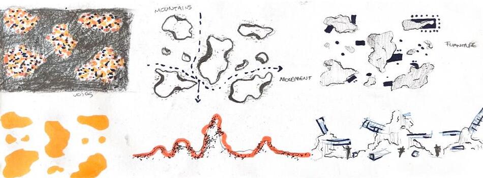 En este entorno se crean espacios funcionales con mobiliario hecho de los mismos elementos: mesas, asientos y una cabina de DJ que activan el espacio y prolongan la vida del material. Las chapas rotas definen un perímetro poroso, con accesos múltiples y una geometría orgánica.