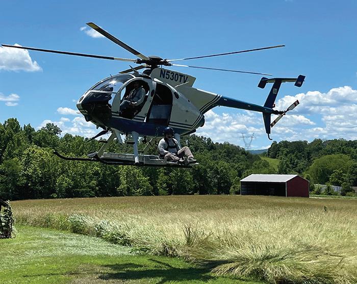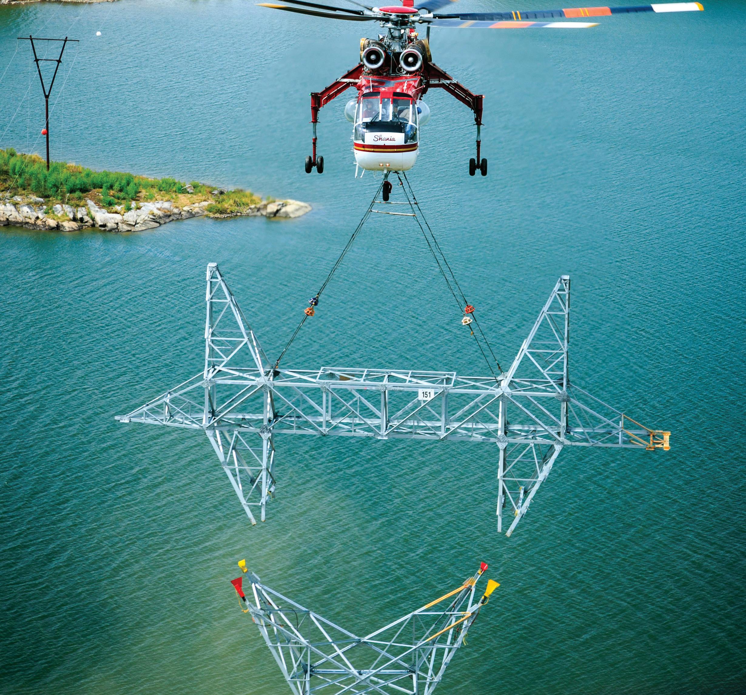 Our helicopter construction crew lifts off over a beautiful wheat field in Bledsoe Co., TN. The team is installing fiber optic cable to the high-voltage transmission towers. The network supports communications between our generating plants, substations, and operations centers.